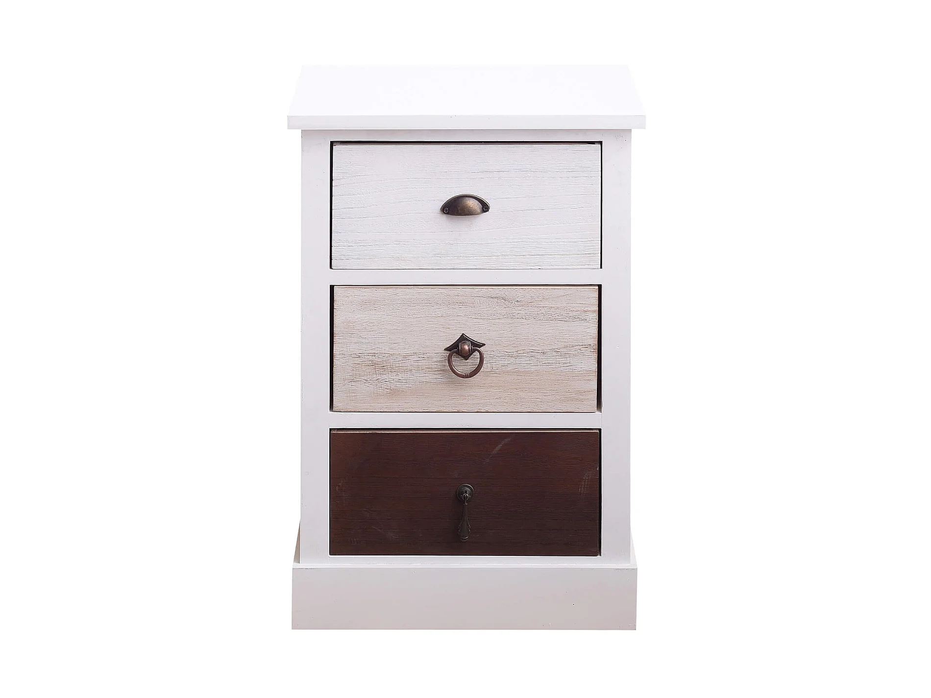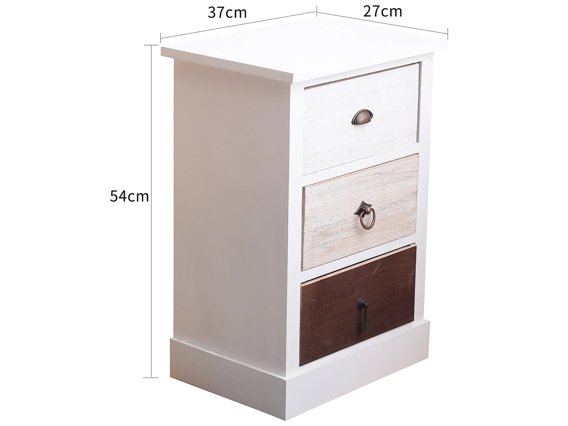 Table De Chevet 3 Tiroirs Bois Blanc Marron Beige 53,5x37x27