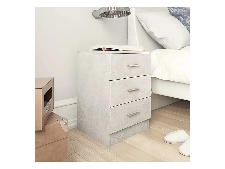 Table de chevet 3 tiroirs bois gris effet béton Metiu