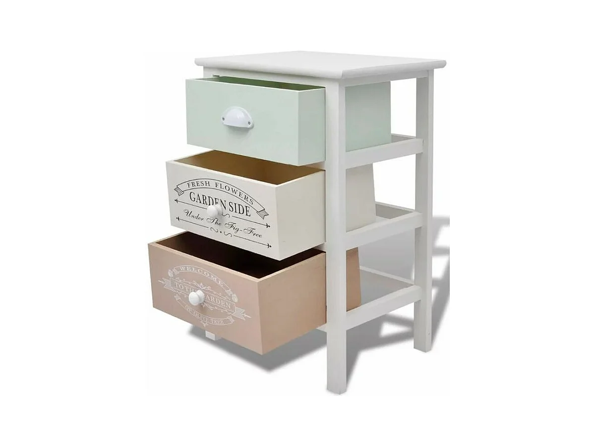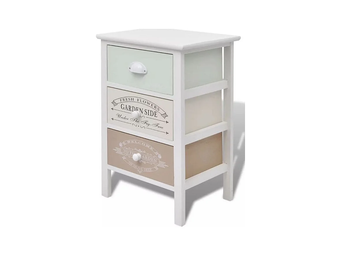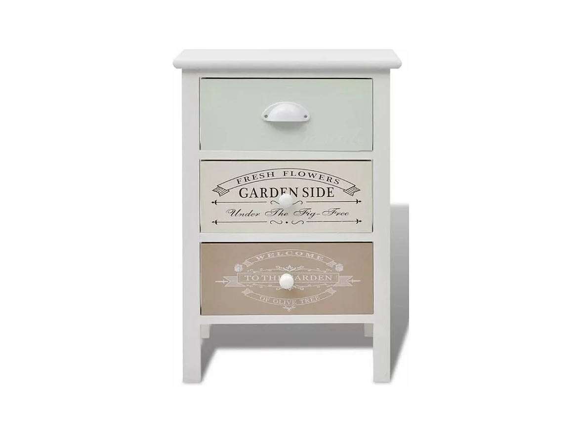 Table de chevet 3 tiroirs bois paulownia massif blanc Frenchy