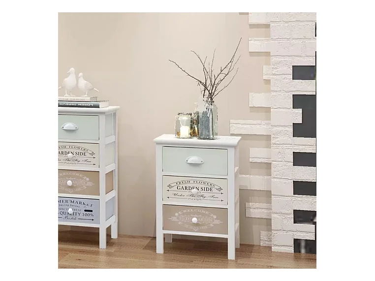 Table de chevet 3 tiroirs bois blanc Metiu