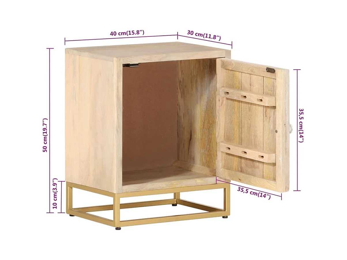 Table de chevet 40x30x50 Bois de manguier massif 5