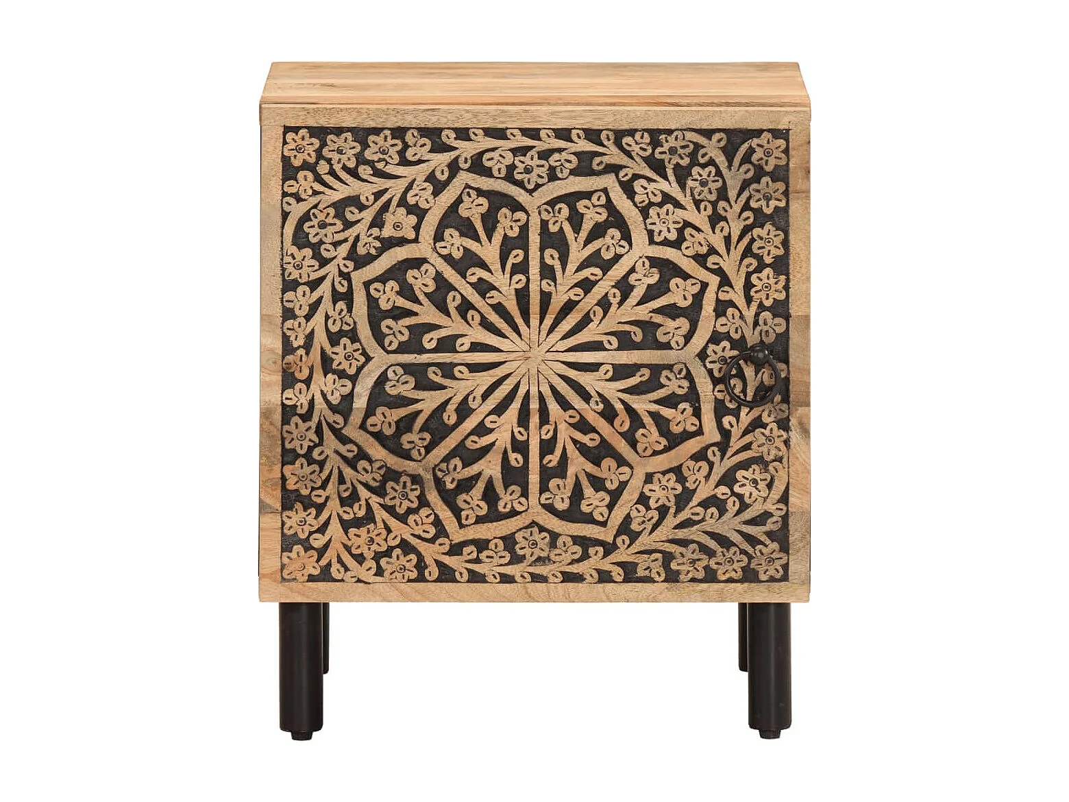 Table de chevet marron et noir bois de manguier solide
