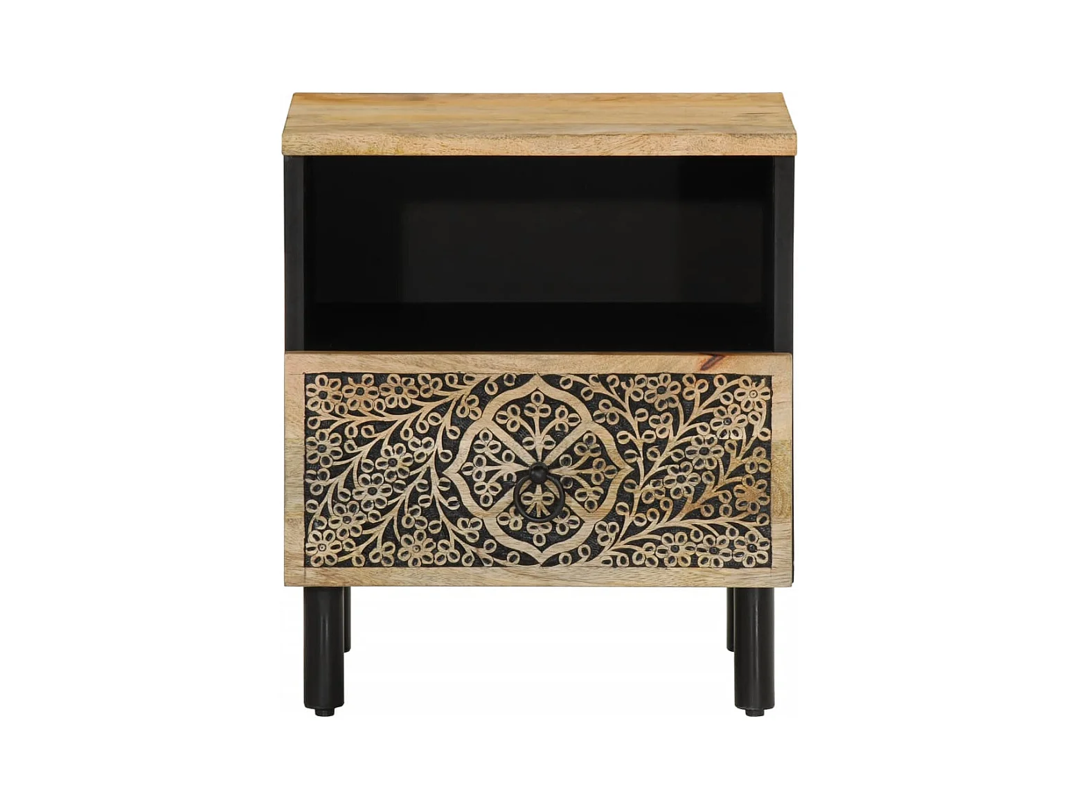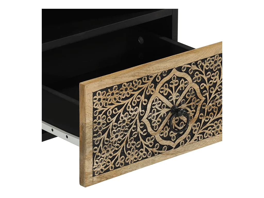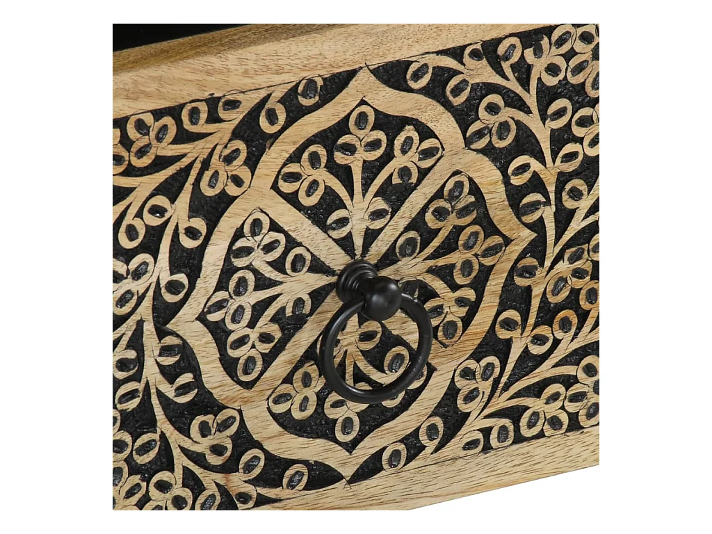 Table de chevet marron et noir bois de manguier solide