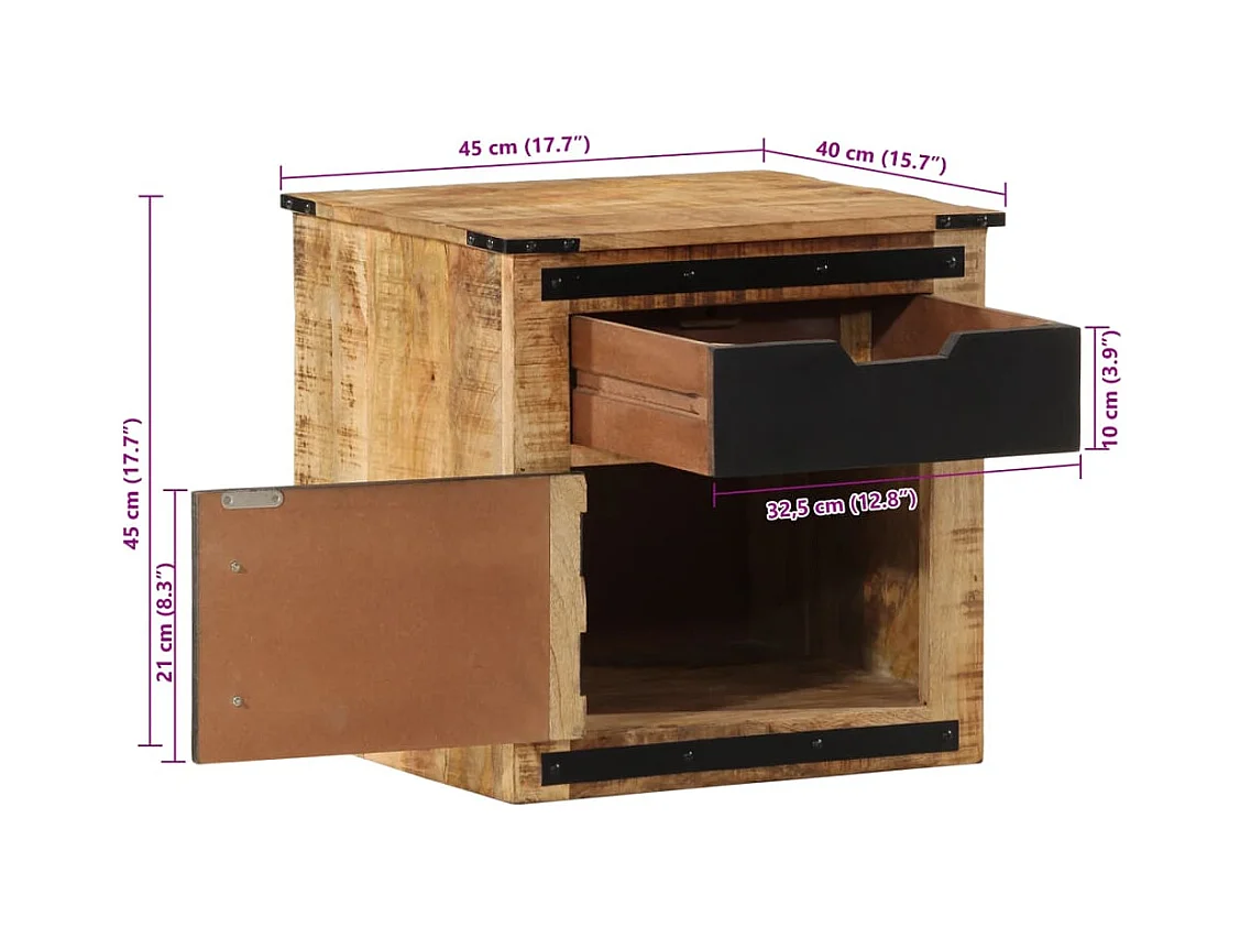 Chevet 1 tiroir et 1 niche bois massif de mindi Kretos 60cm