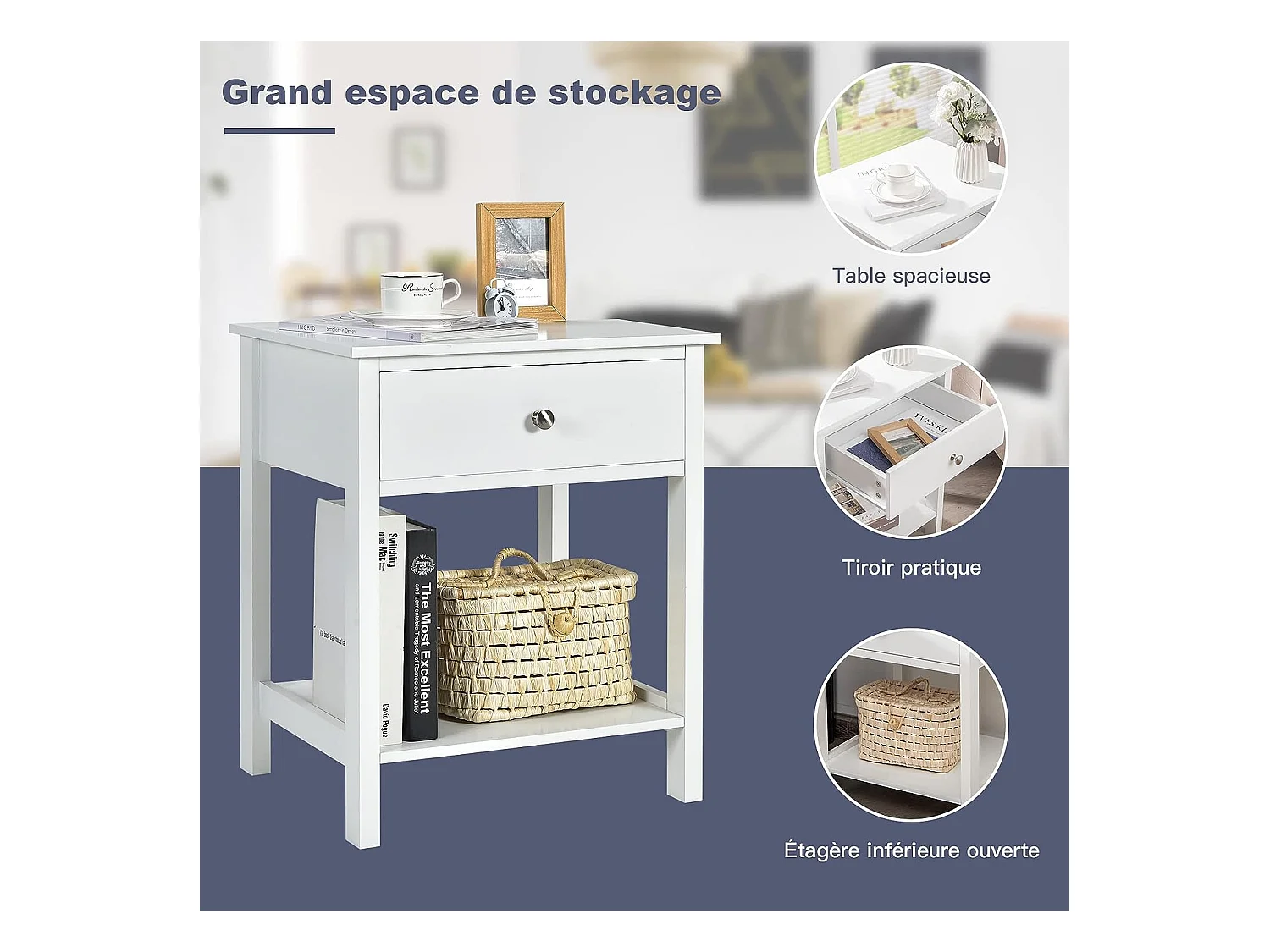 Table de Chevet à 2 Niveaux Style Moderne Simple 48 x 40 x 58 CM Blanc