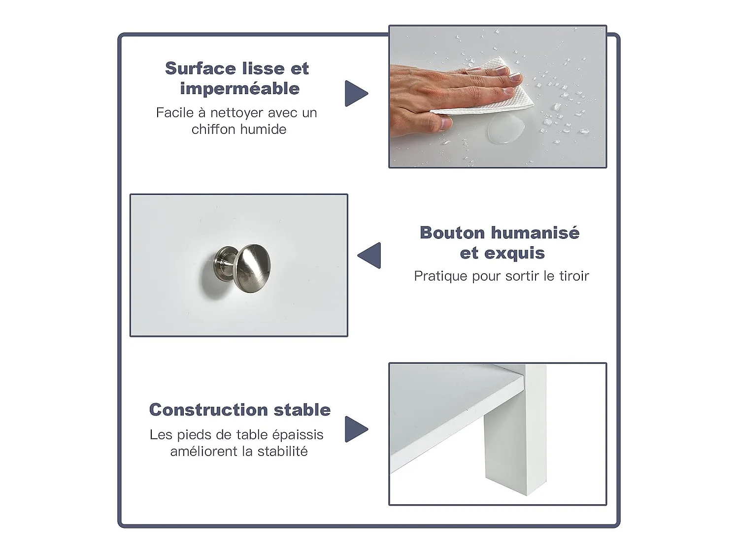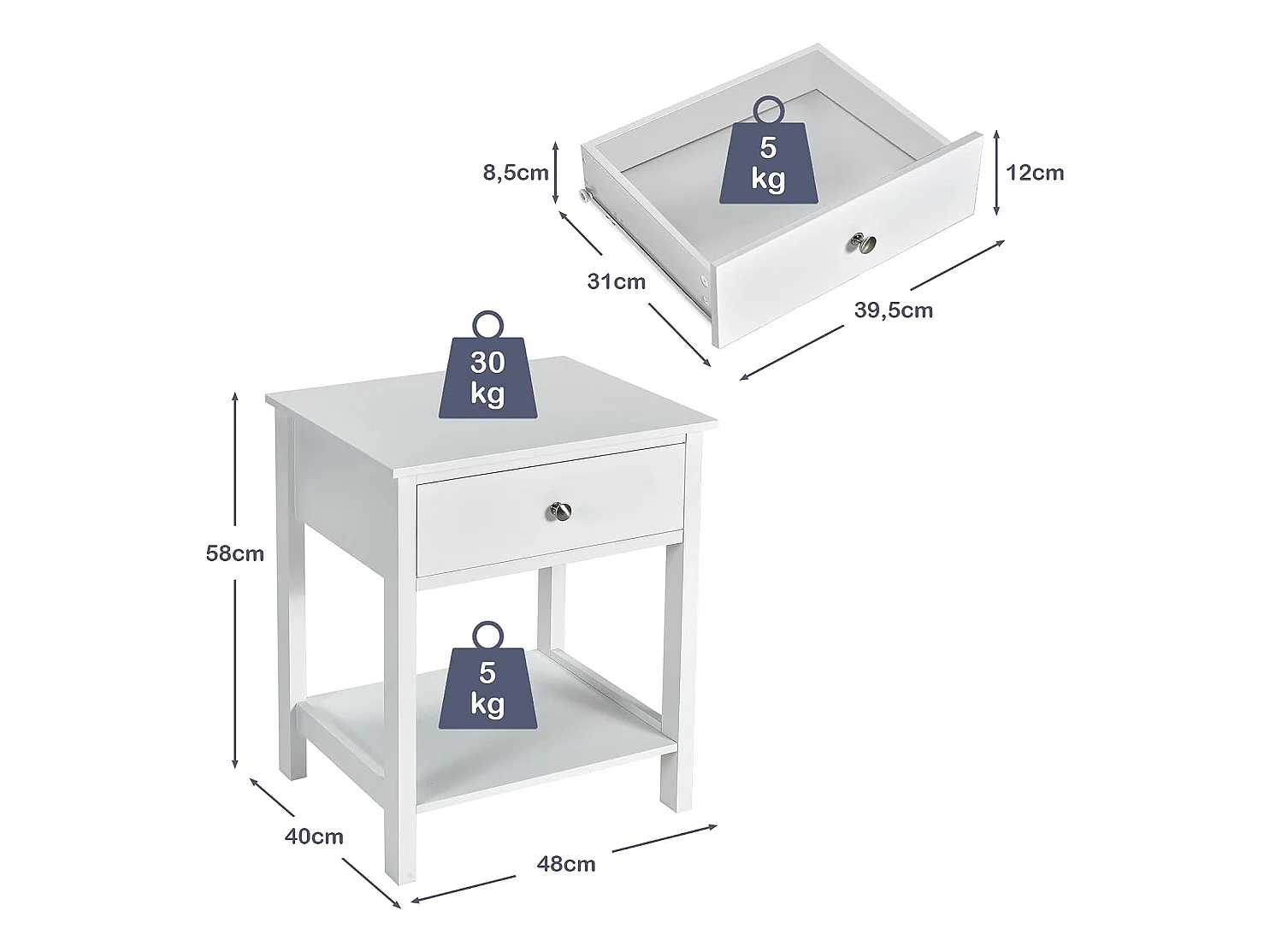 Table de chevet 2 tiroirs en laqué blanc 40x56.5 cm-Vichy