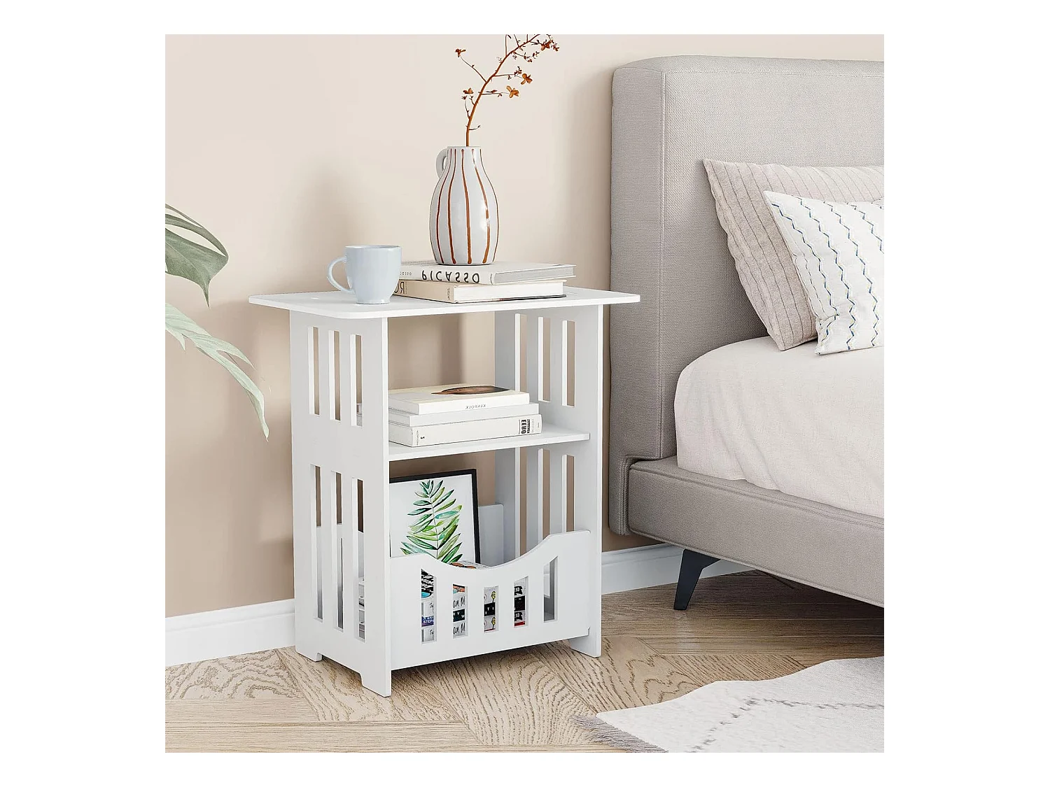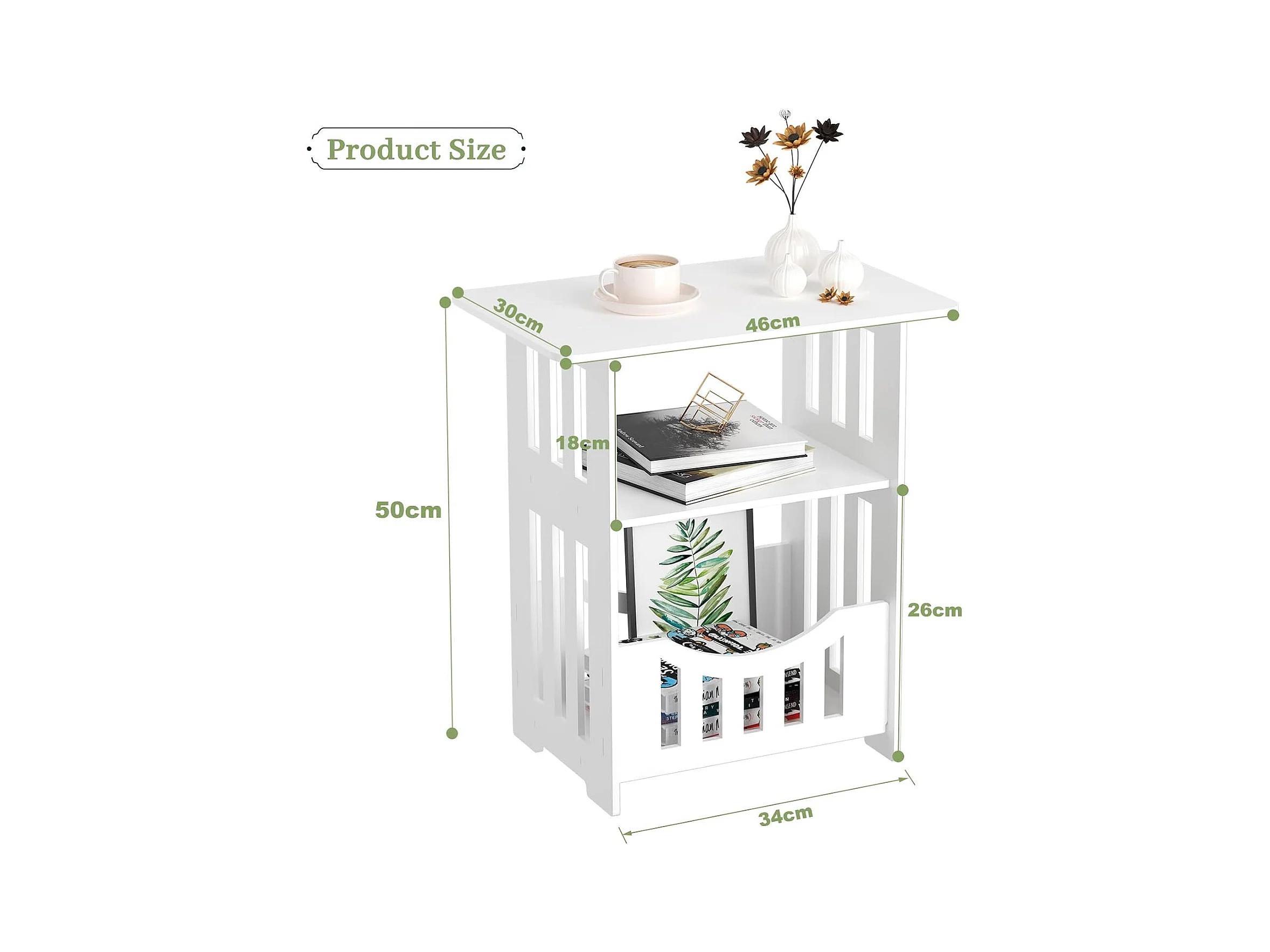 Table de Chevet à 3 Niveaux,Bout de Canapé Table Café,Table d'Appoint - 46x50x30cm - Blanc