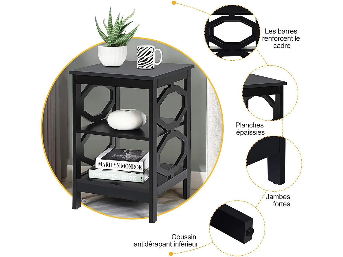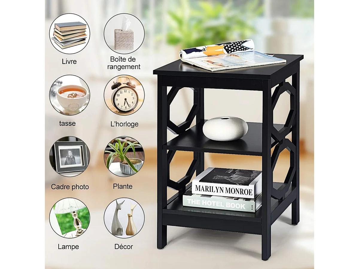 Table de Chevet à 3 Niveaux, Table d'Appoint Chevet, Table Basse Simple et Contemporain, pour Chambre, Salon 40x40x61cm, Noir