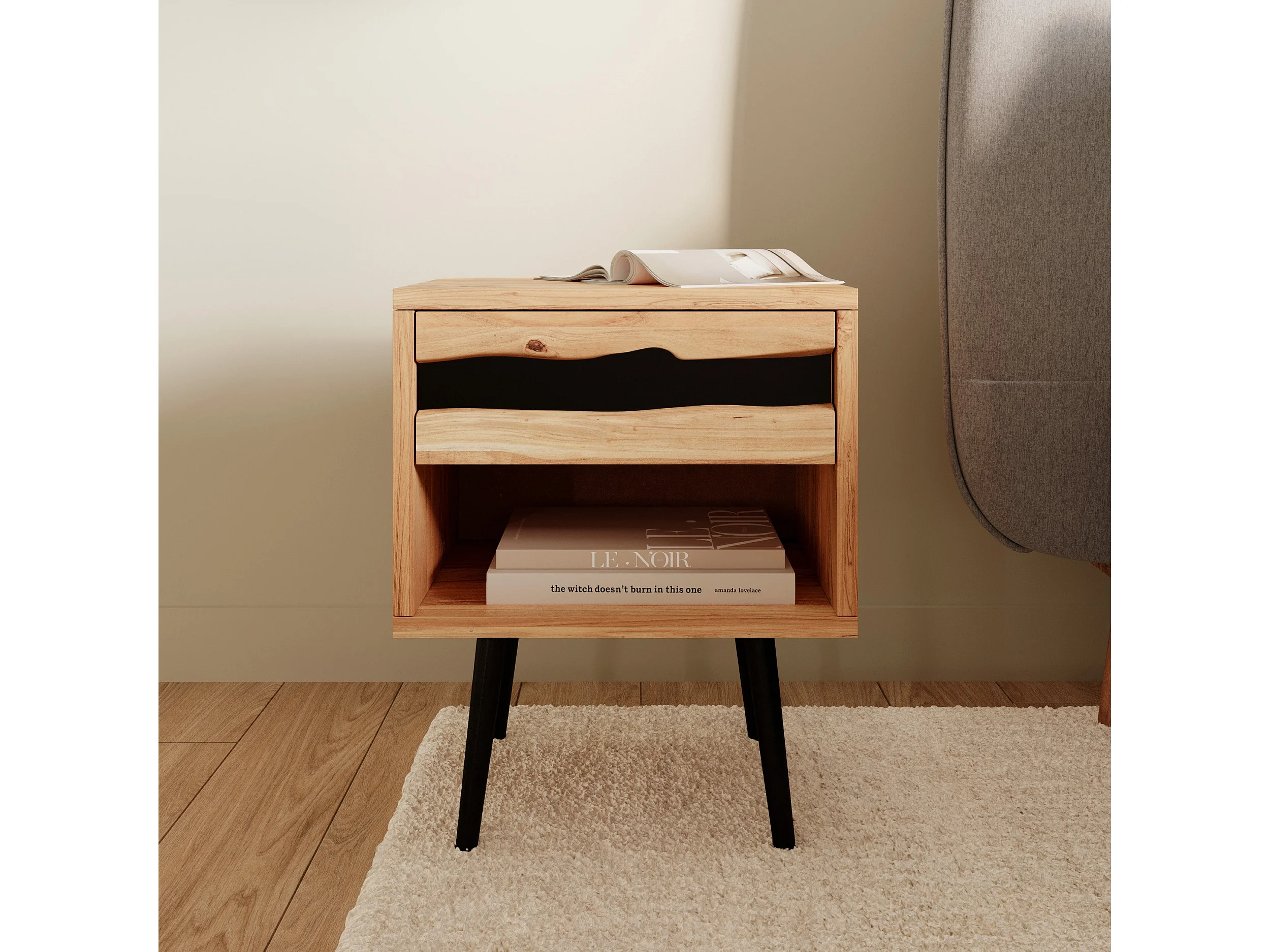 Table de chevet 1 tiroir en bois d'acacia et métal noir - Jakson