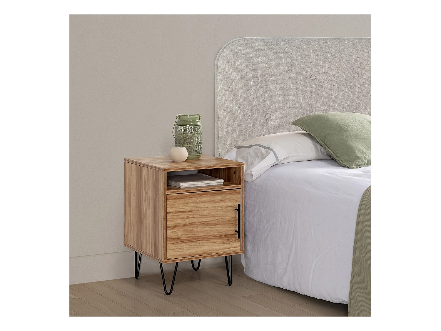 Table de chevet Alma 1 porte coloris bois, pieds métal