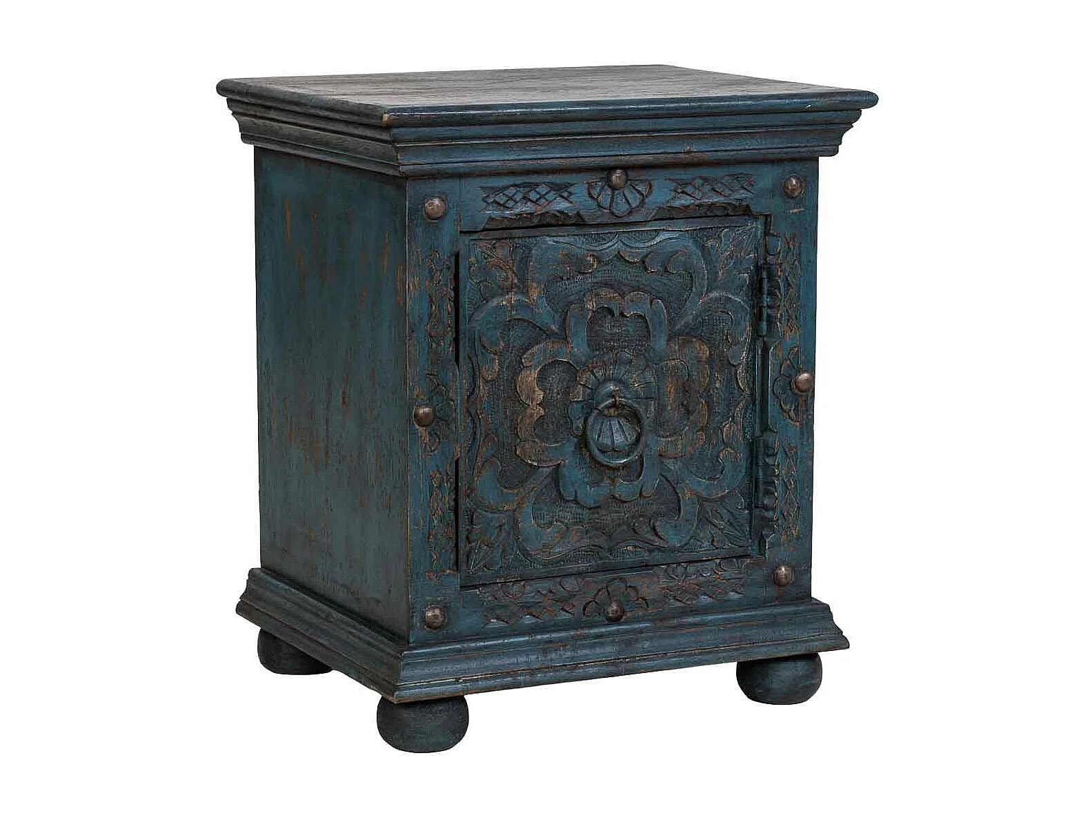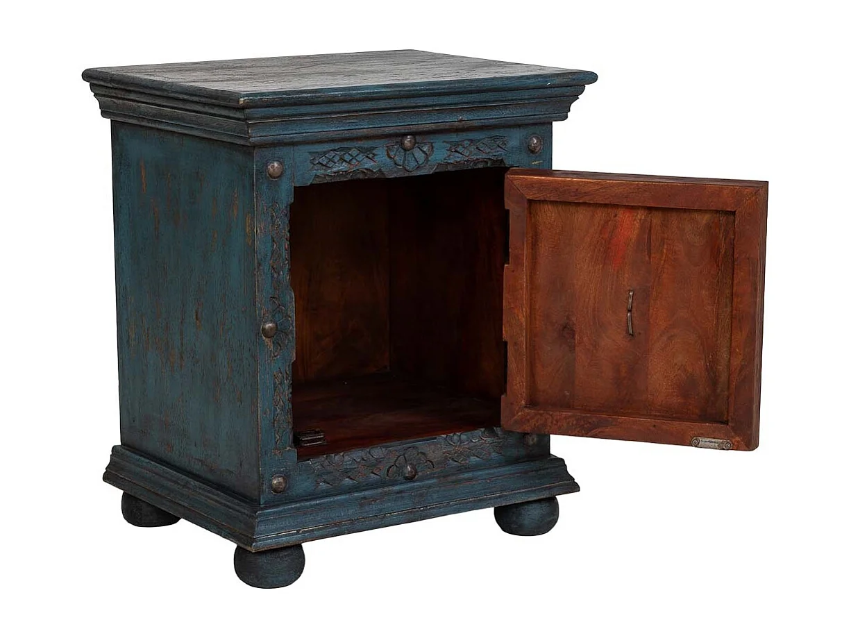 Table de chevet artisanale en bois bleu, 50 x 40 x 59 cm (h)