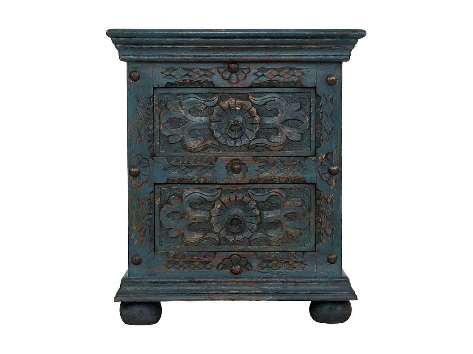 Table de chevet artisanale en bois bleu 50 x 40 x 60 cm (h)