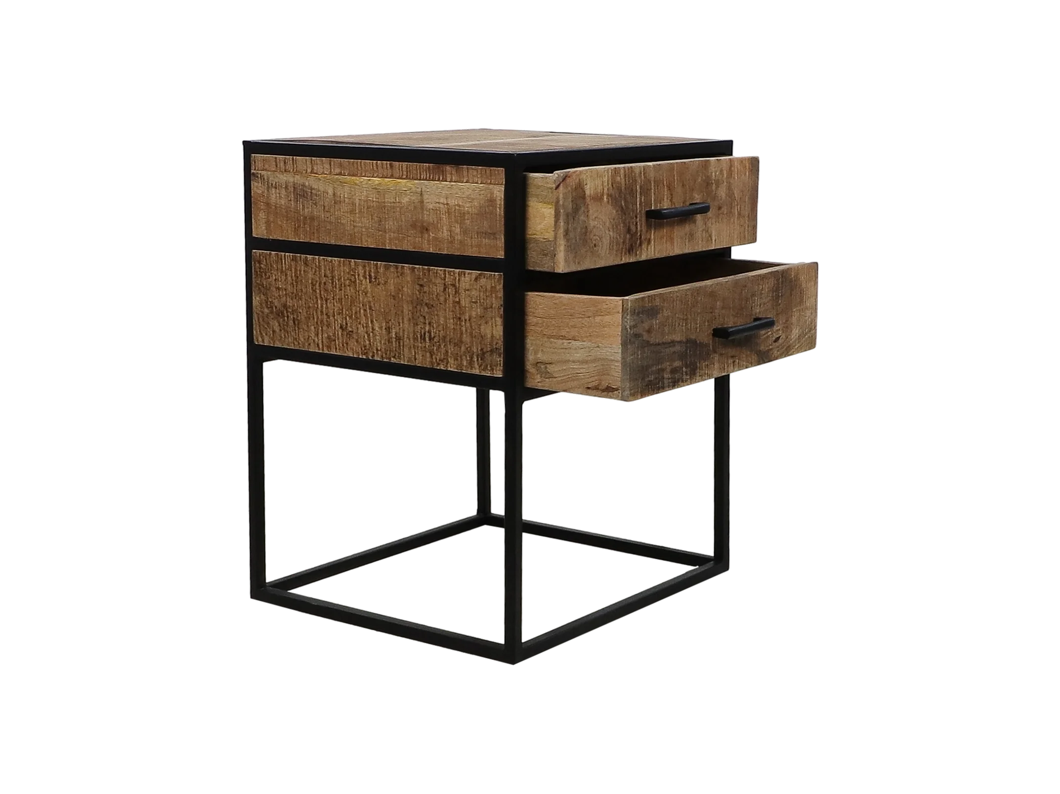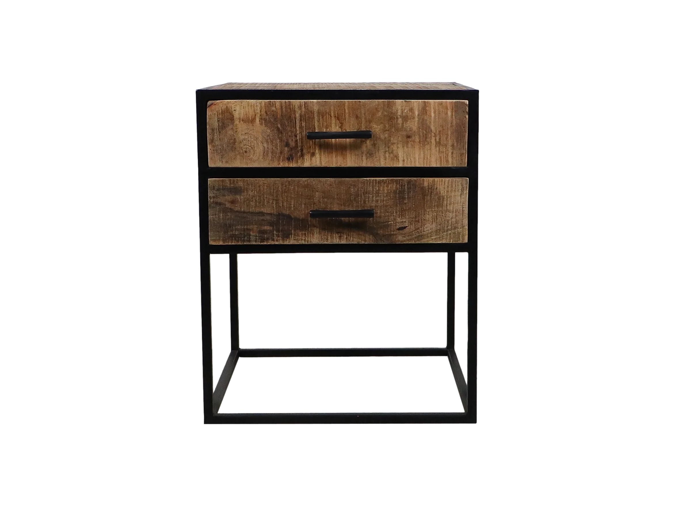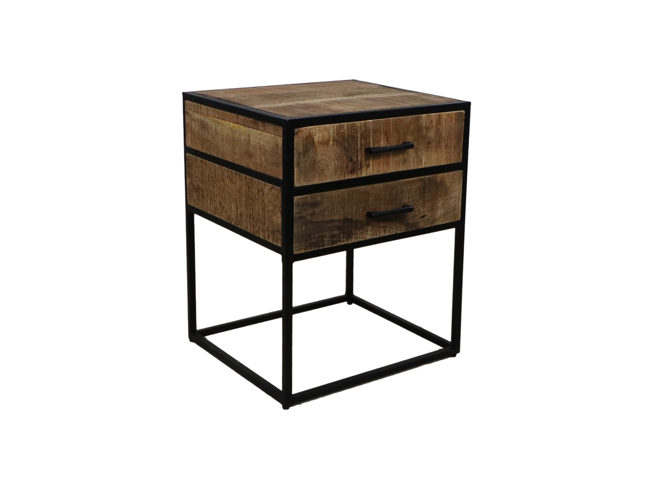 Table de chevet avec 2 tiroirs - Bois de manguier /fer 45*40*55