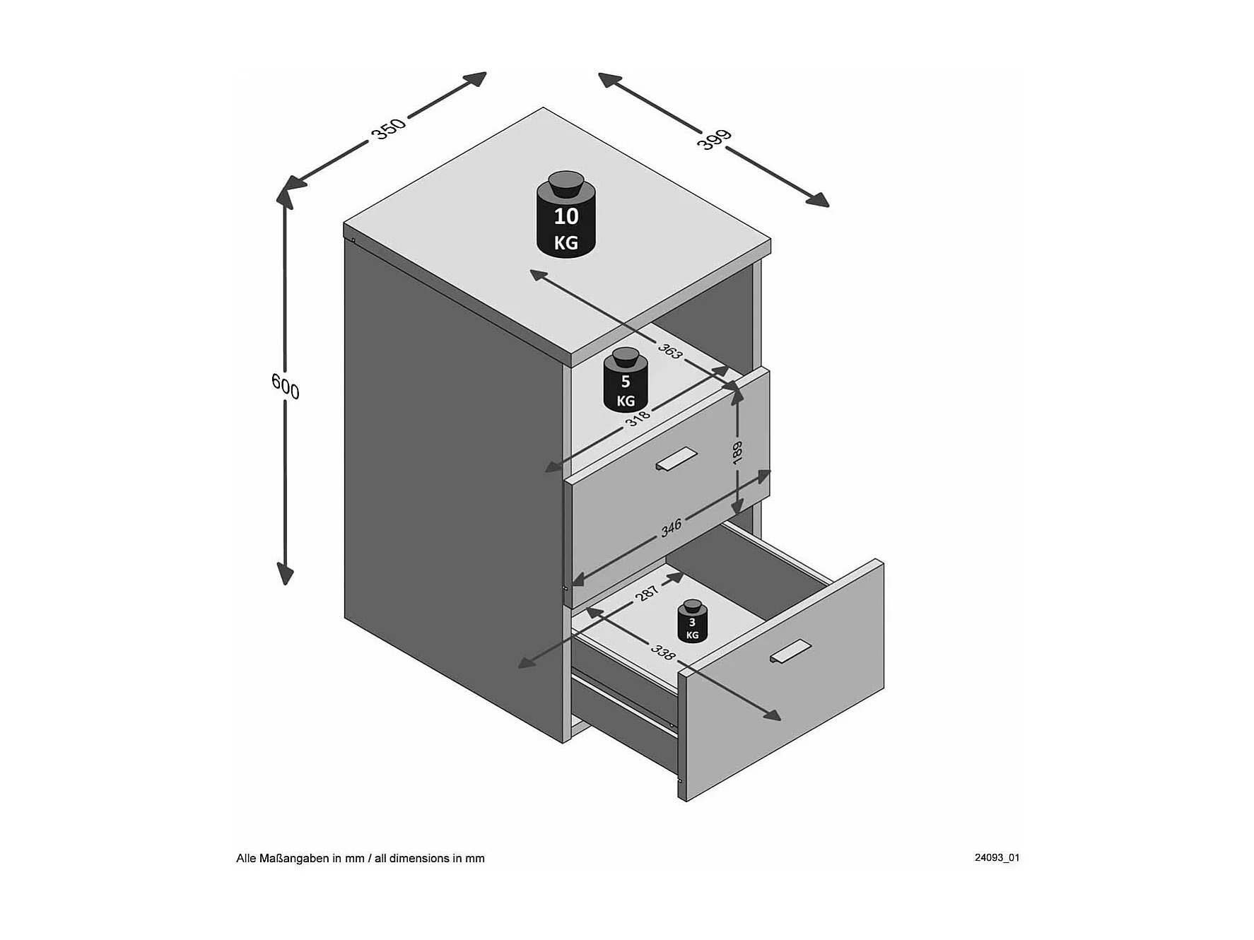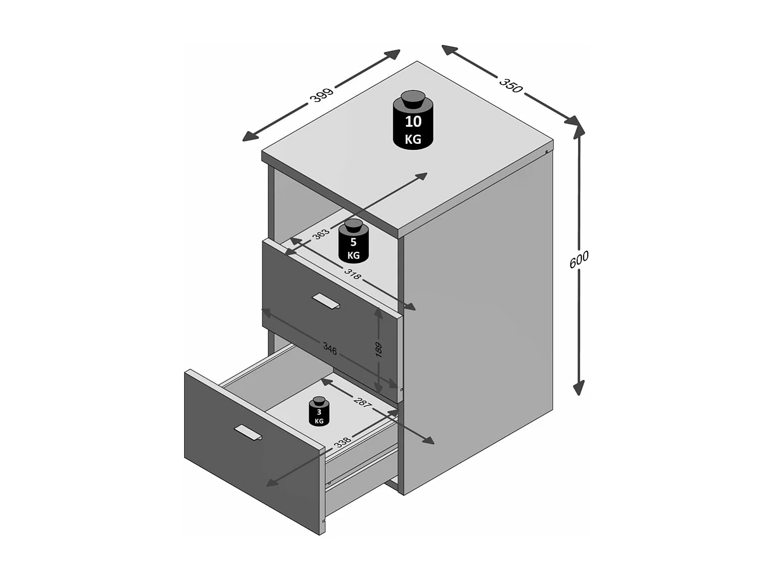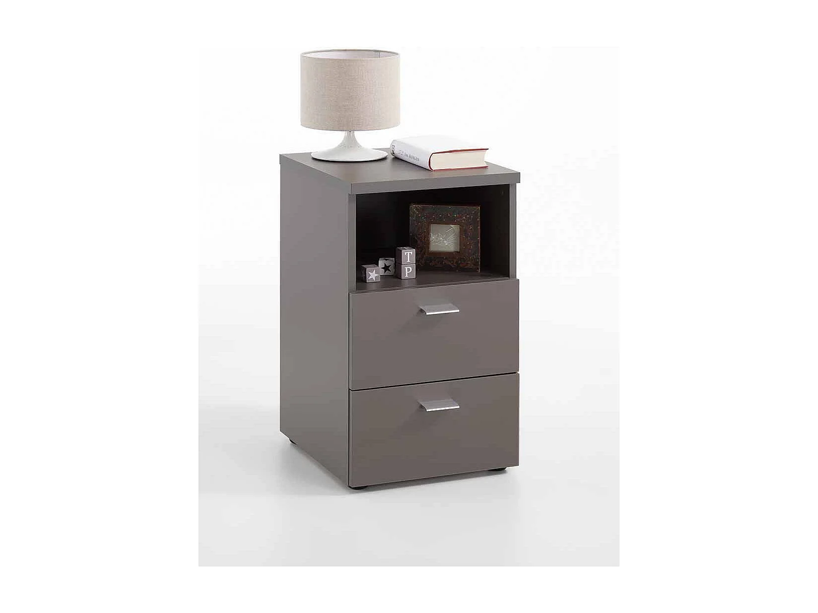 Table de Chevet 2 Tiroirs "Macom" 61cm Gris