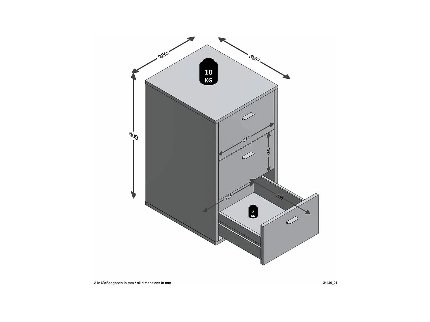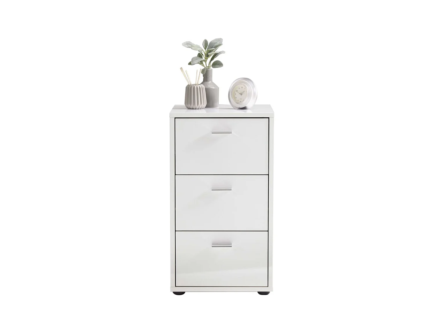 Table d'Appoint 3 Tiroirs Design "Gania" 62cm Blanc Laqué
