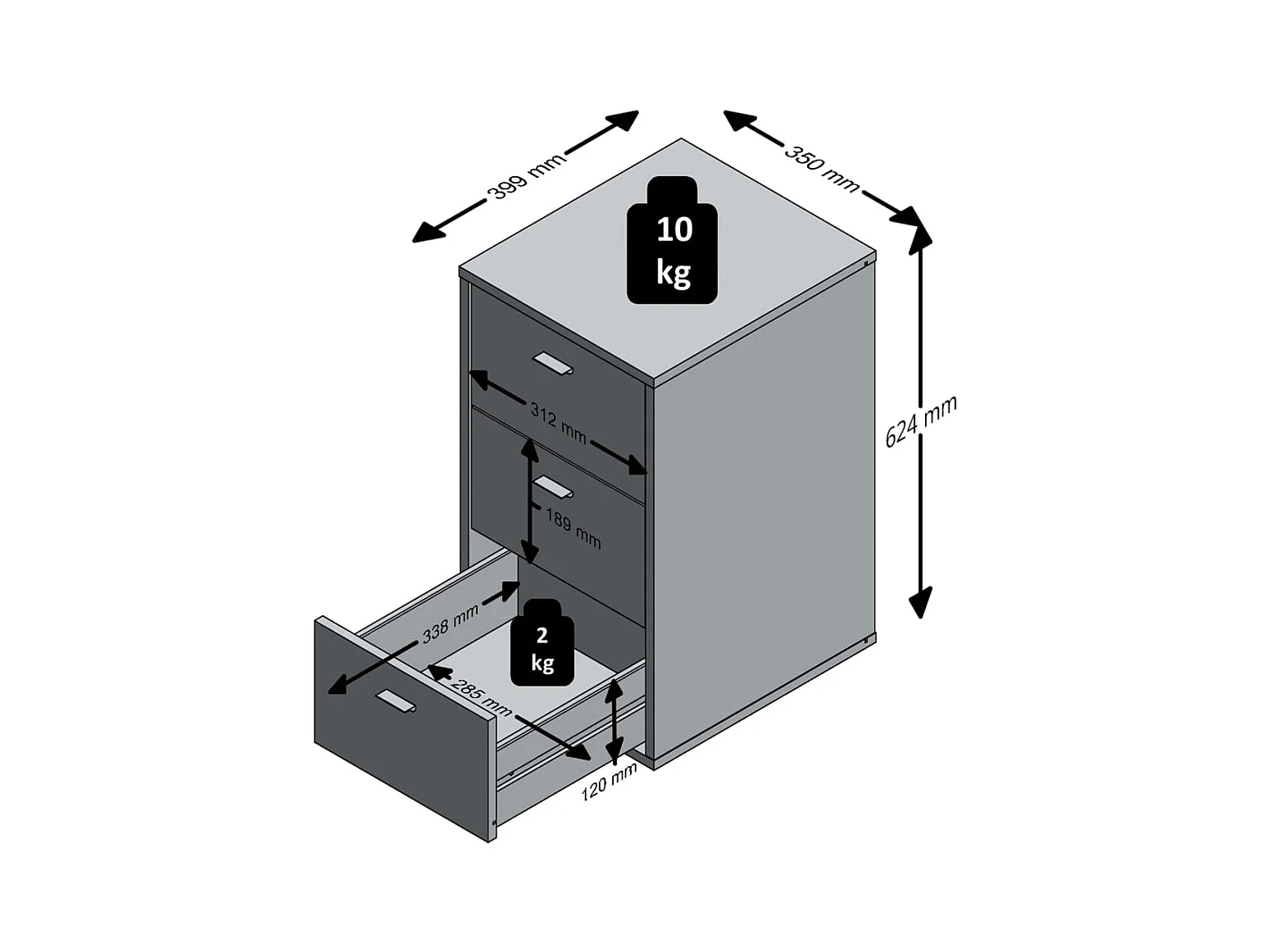Table de Chevet 3 Tiroirs Design "Gania" 62cm Noir