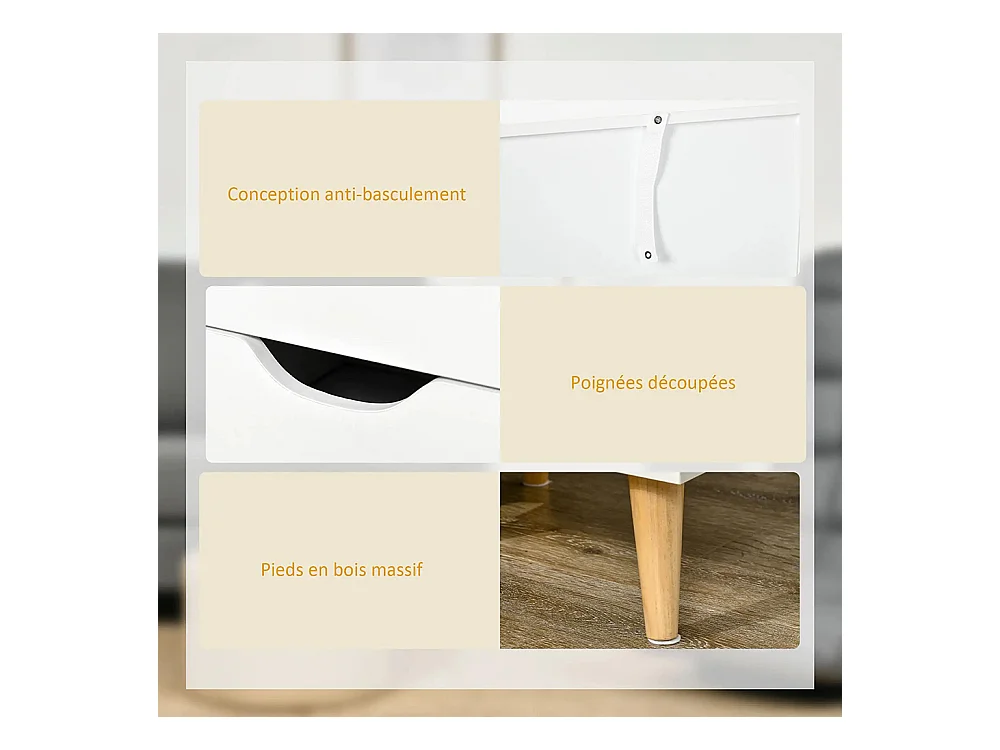 Table de chevet avec tiroirs, compartiments de rangement et étagères, effet bois, dimensions : 45 x 35 x 73 cm, couleur blanche.