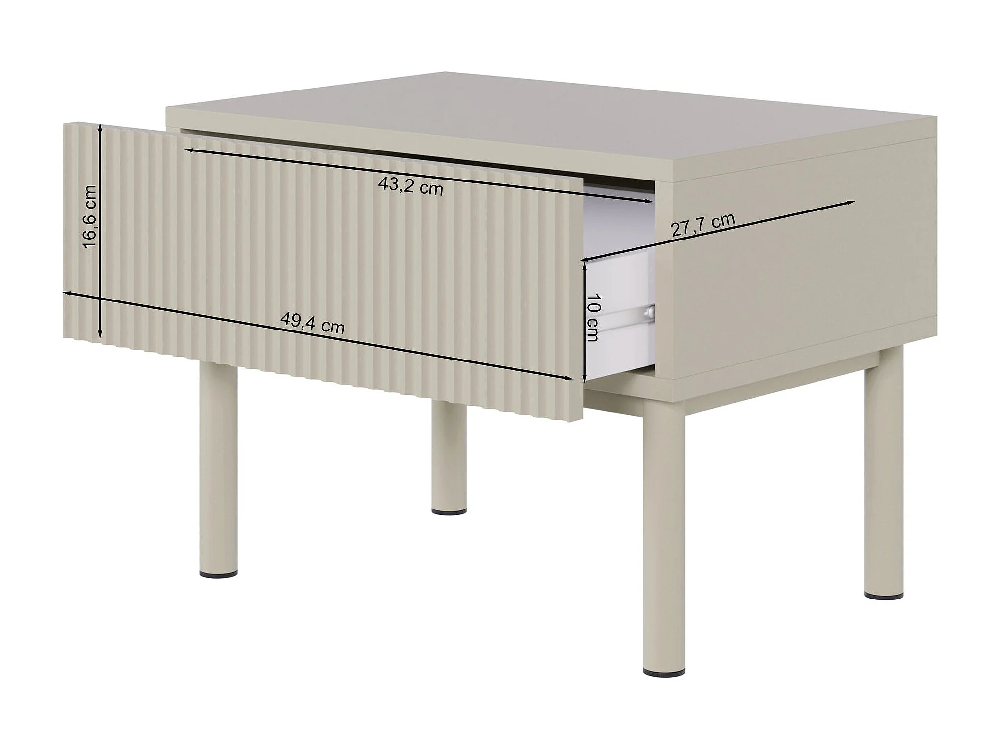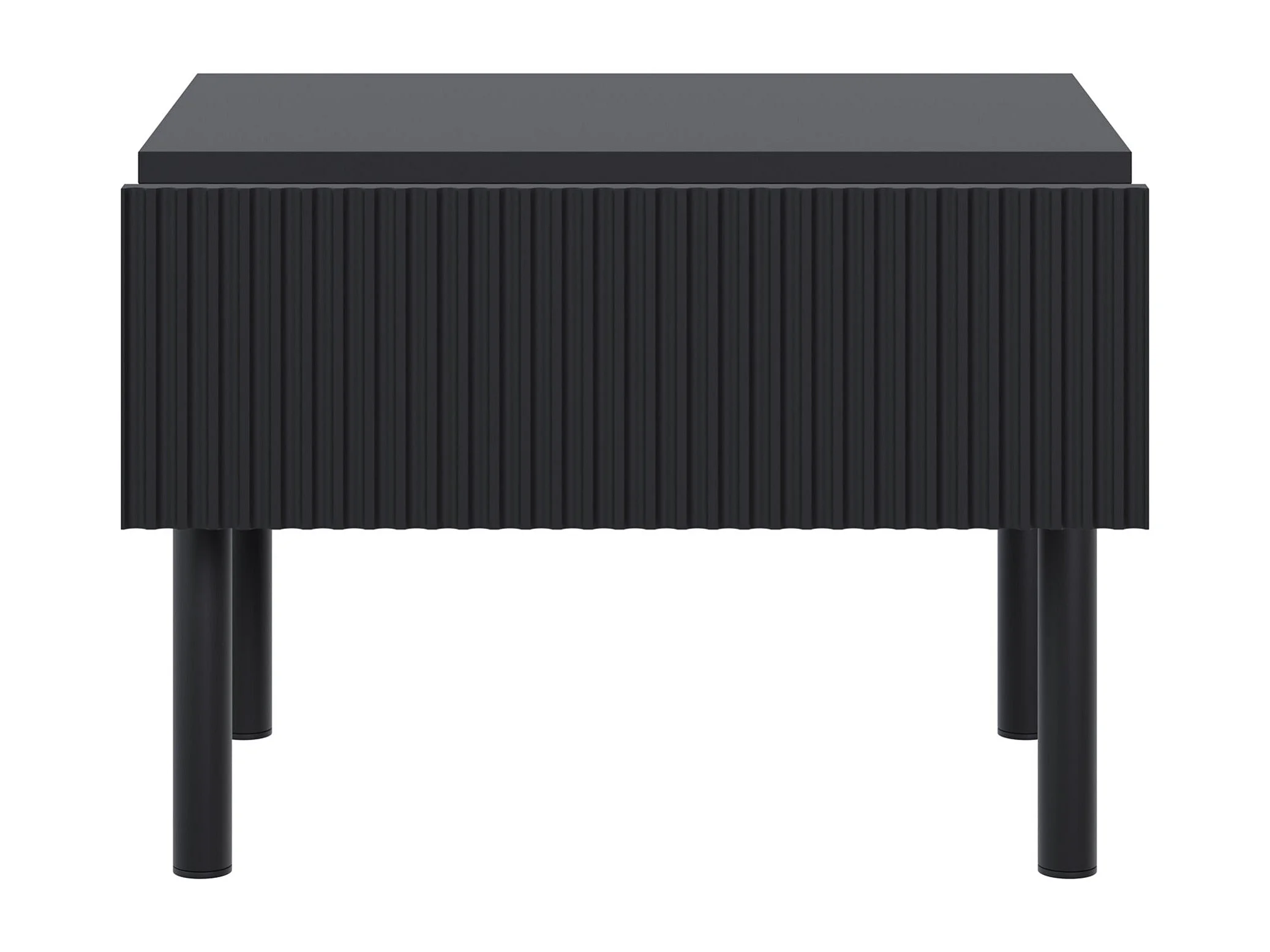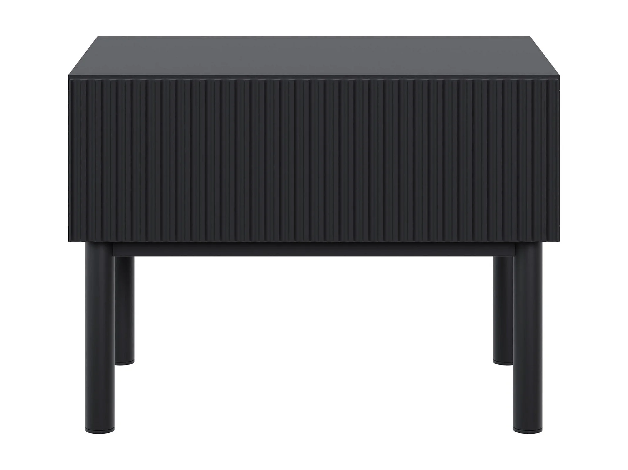 Table de chevet avec façade à rainures et tiroir – 50 cm – noir – Veldio New