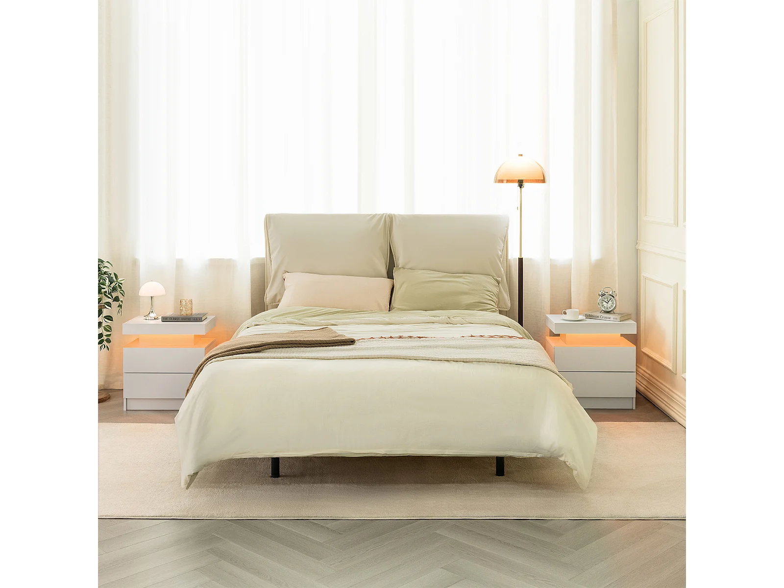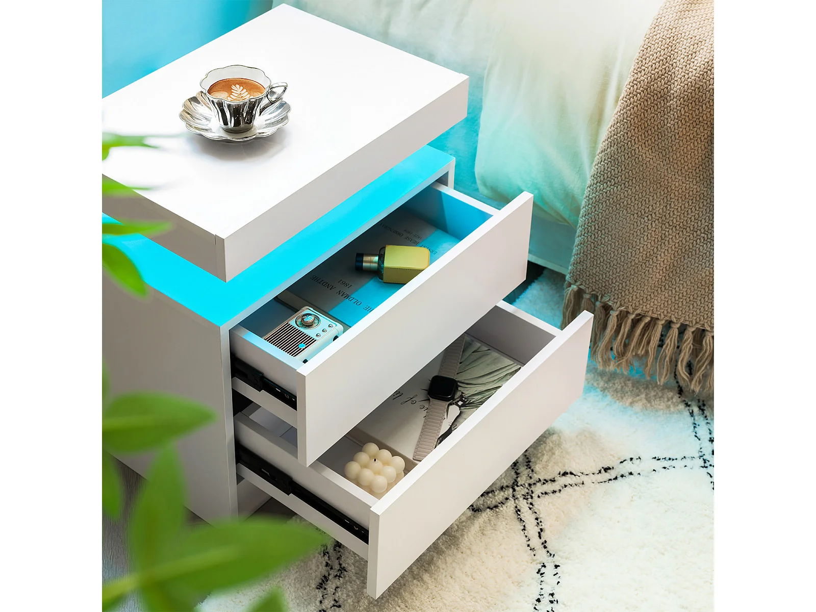 Table de chevet avec LED et 2 tiroirs - Blanc