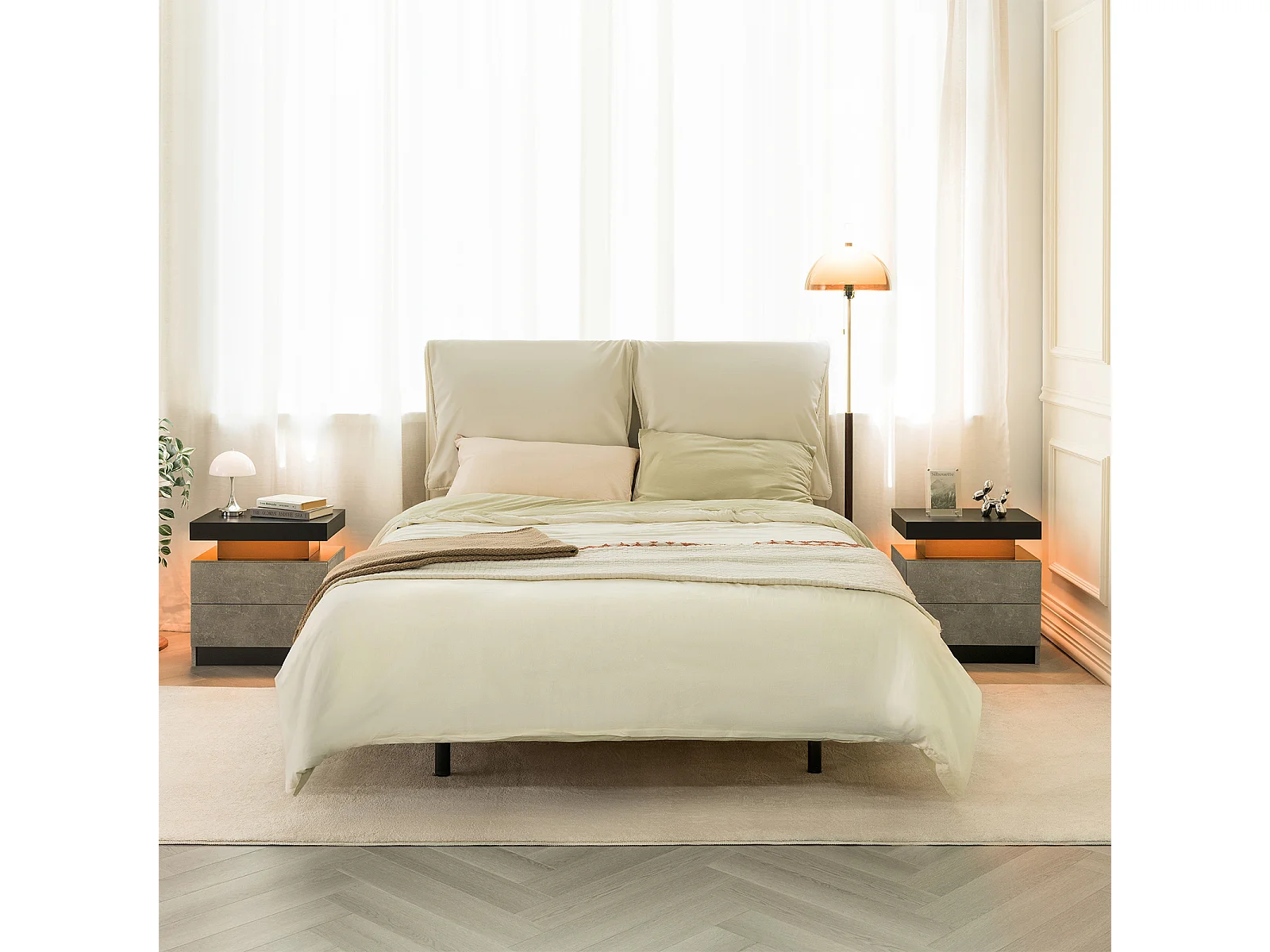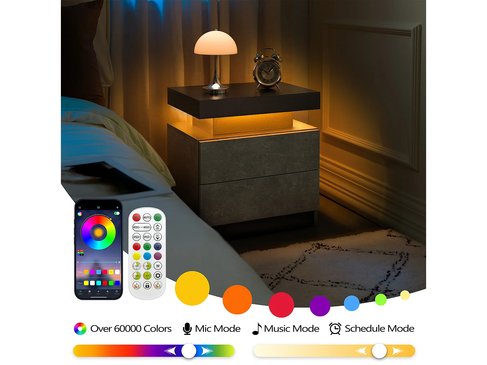 Table de chevet avec LED et 2 tiroirs - Plateau noir - Gris