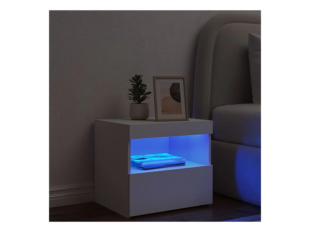 Armoire de chevet avec lumières LED blanc bois d'ingénierie