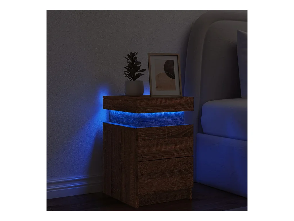 Table de chevet avec lumières LED chêne marron 35x39x55