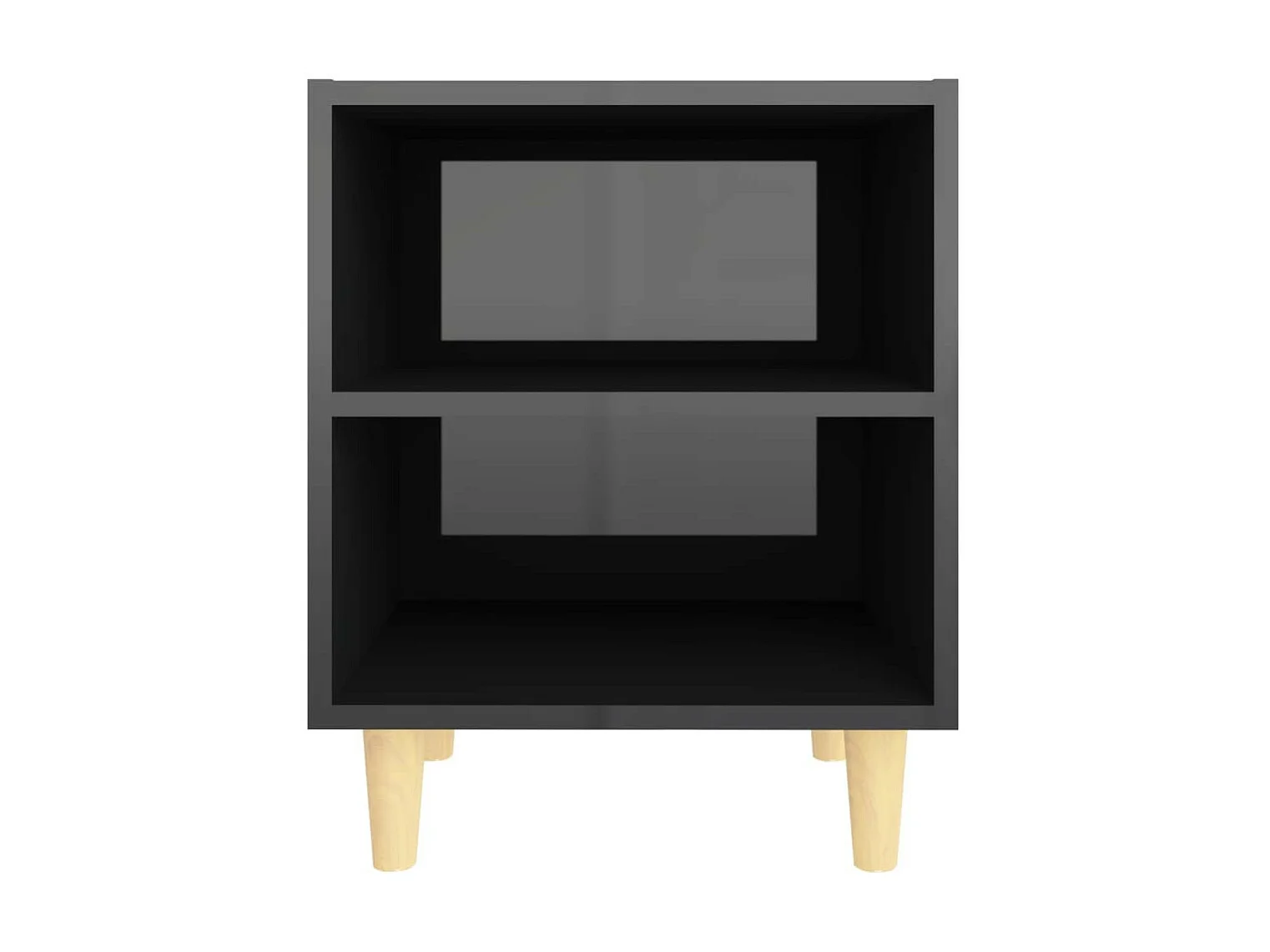 Table de chevet avec pieds en bois Noir brillant 40x30x50 2