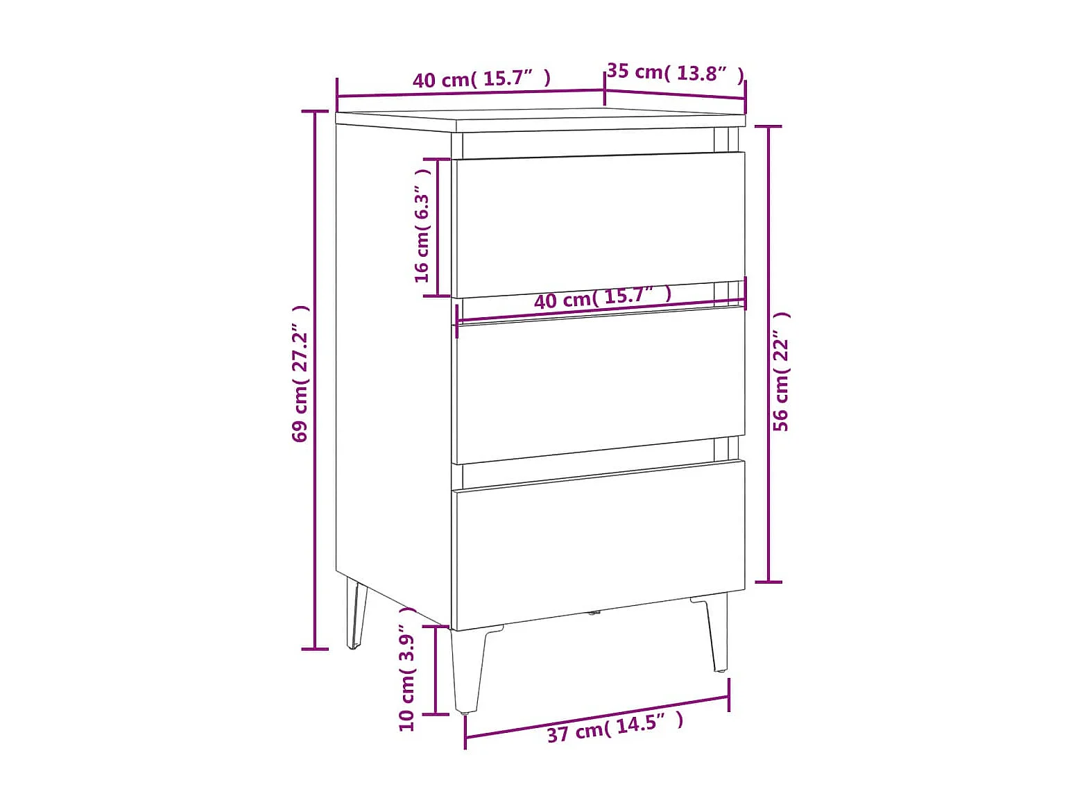 Table de chevet avec pieds en métal Blanc 40x35x69 cm