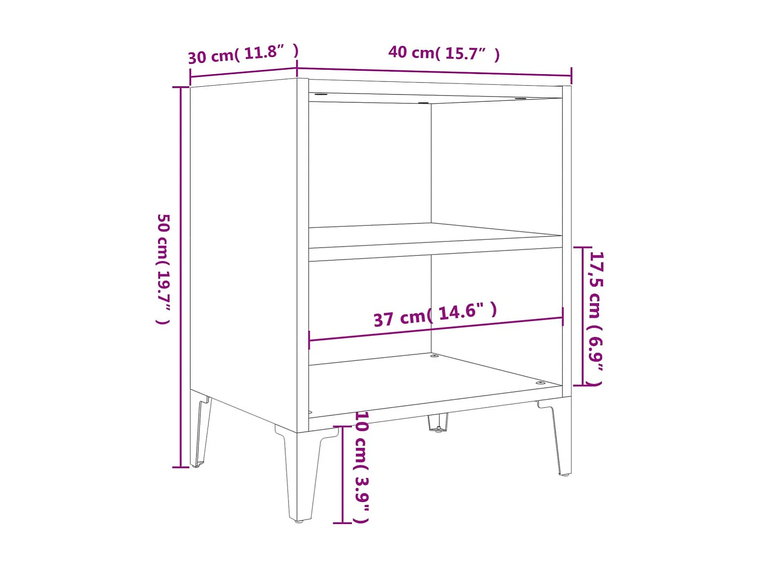 Table de chevet avec pieds en métal gris béton 40x30x50 cm