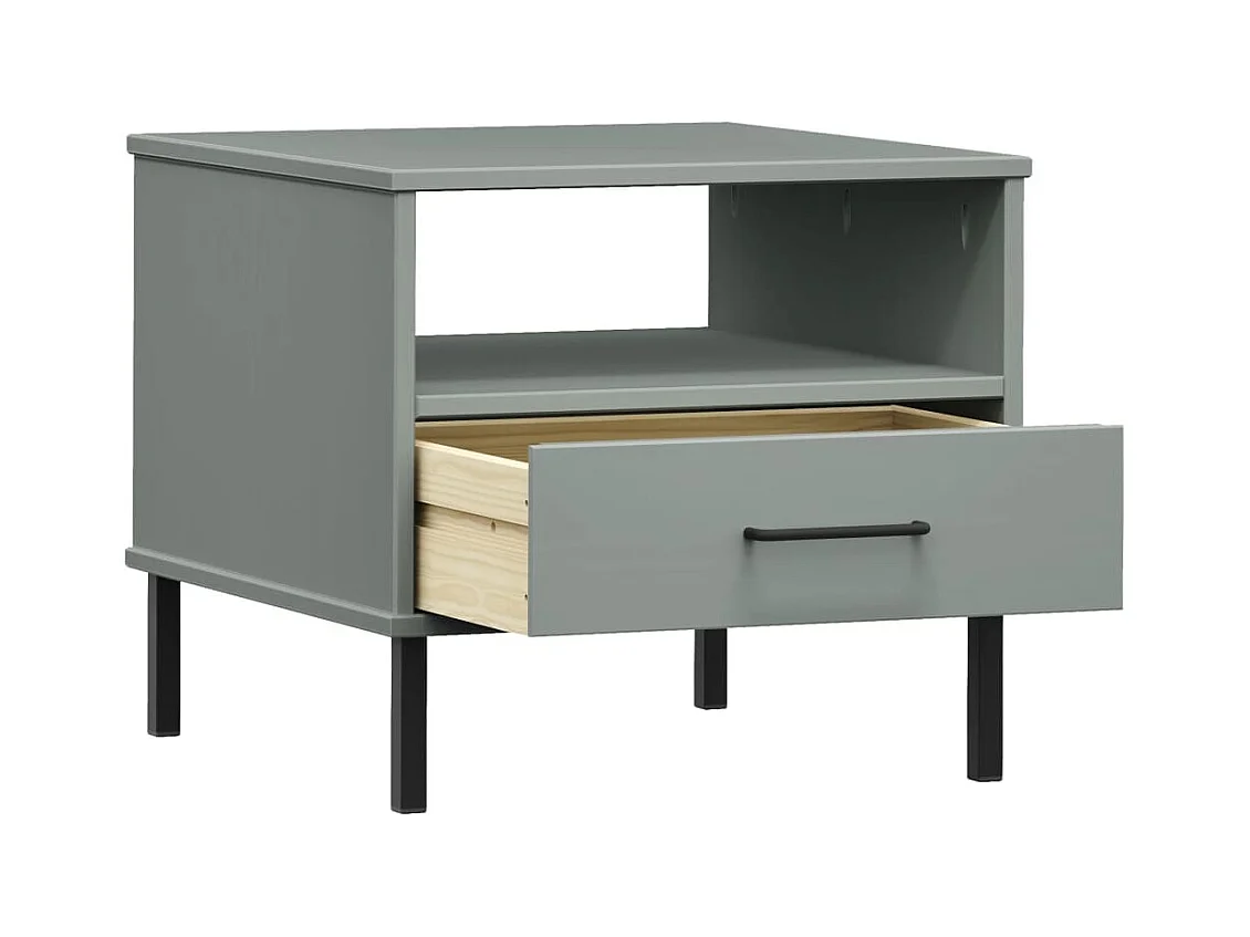Table de chevet avec pieds en métal Gris Bois pin massif OSLO