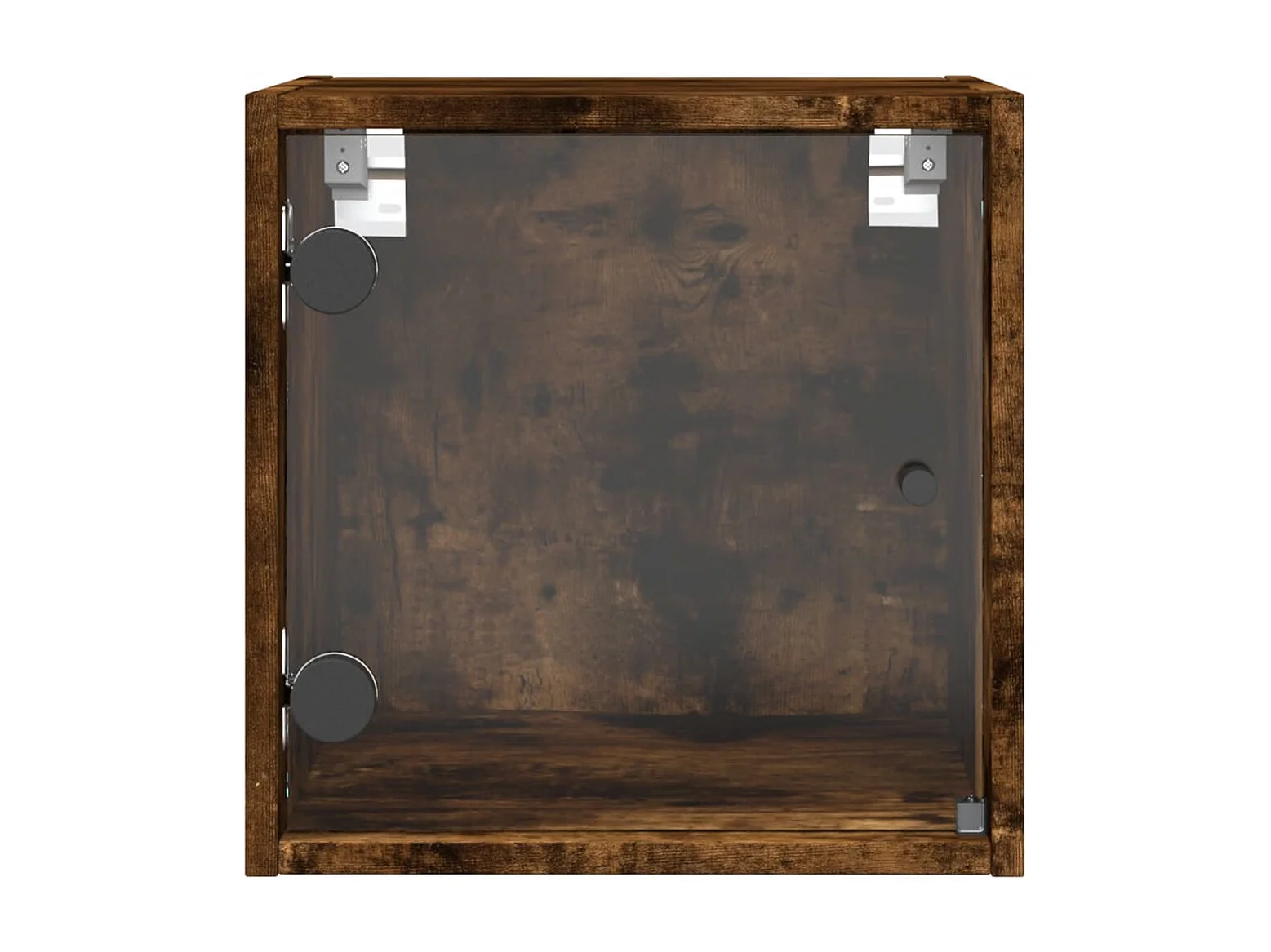 Table de chevet avec porte en verre chêne fumé 35x37x35