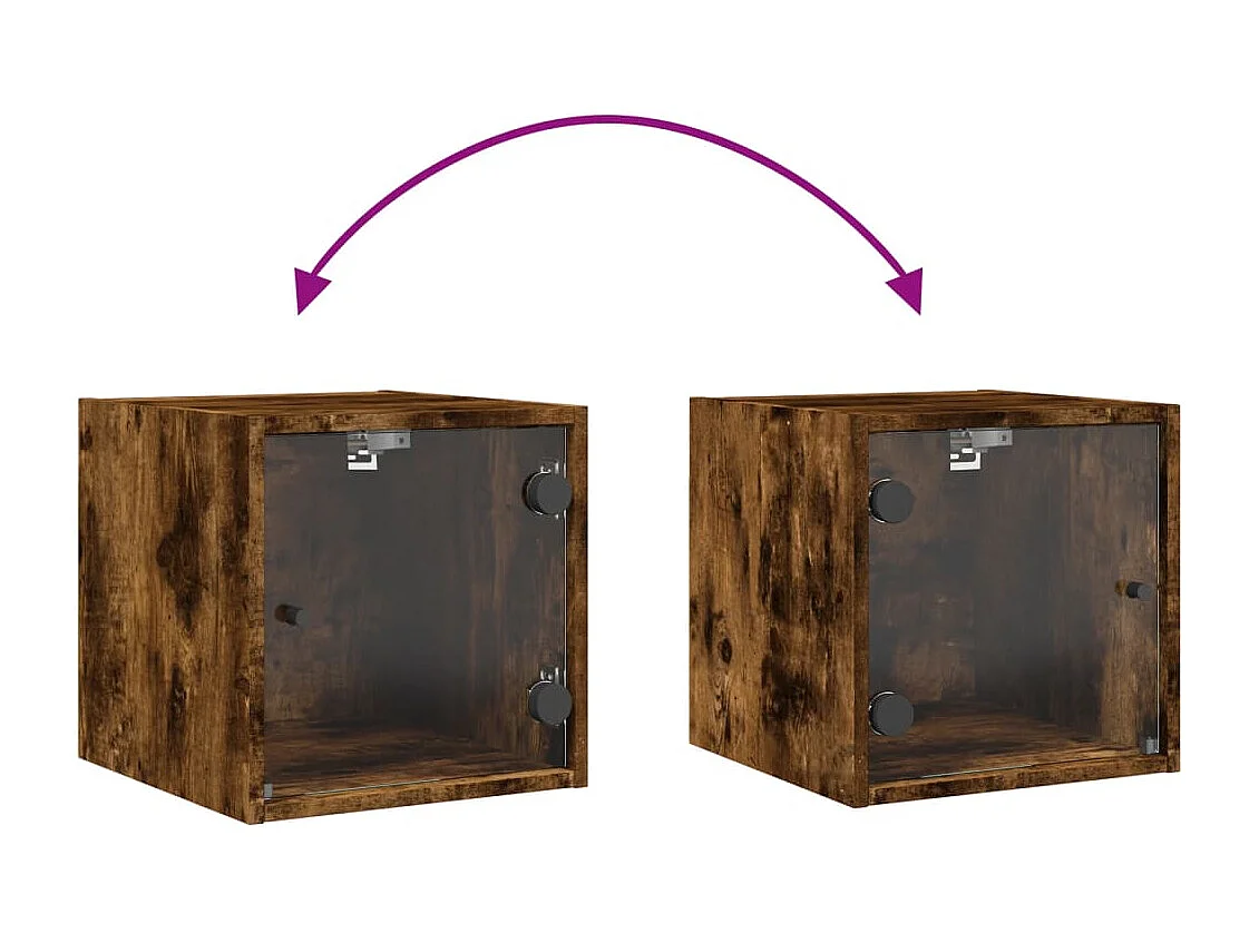 Tables de chevet et portes vitrées 2 pcs chêne fumé 35x37x35