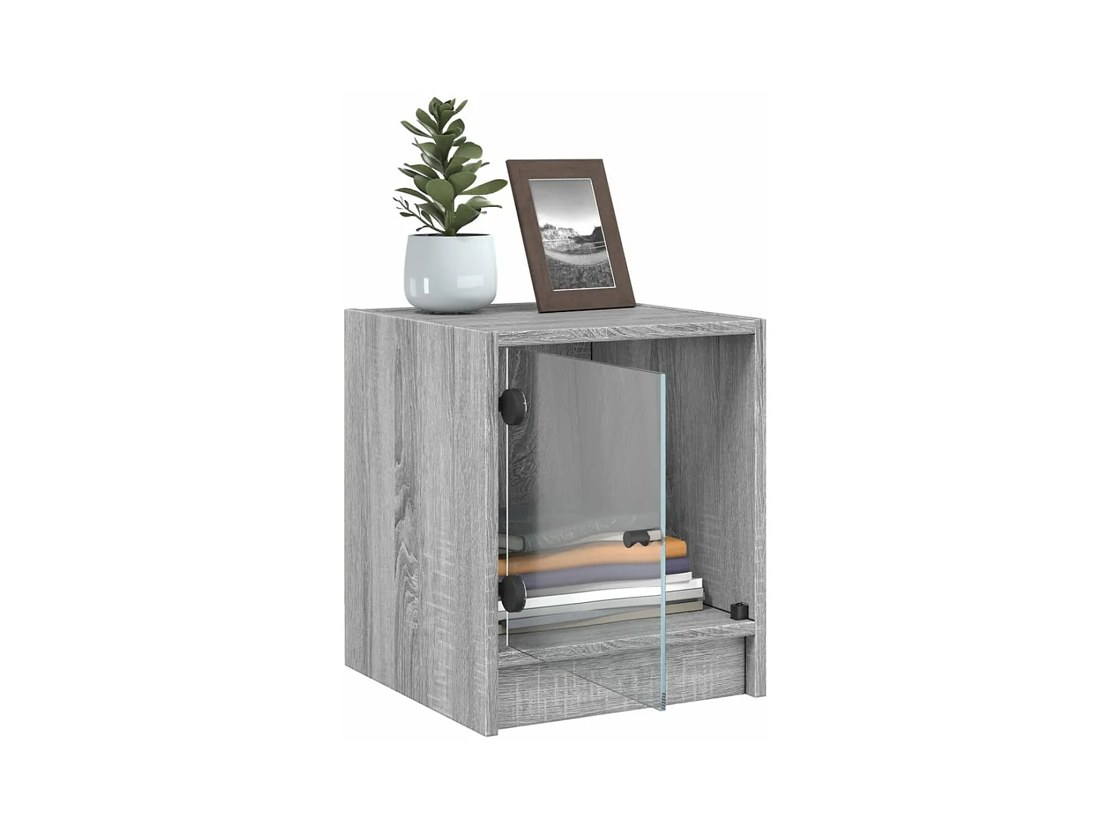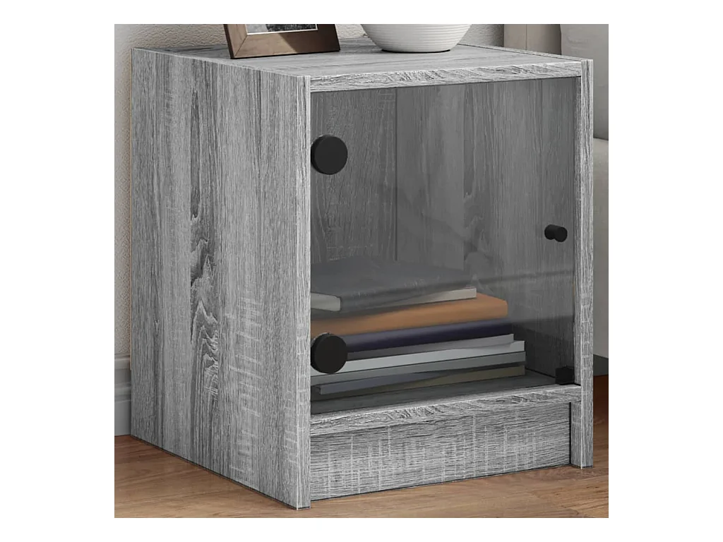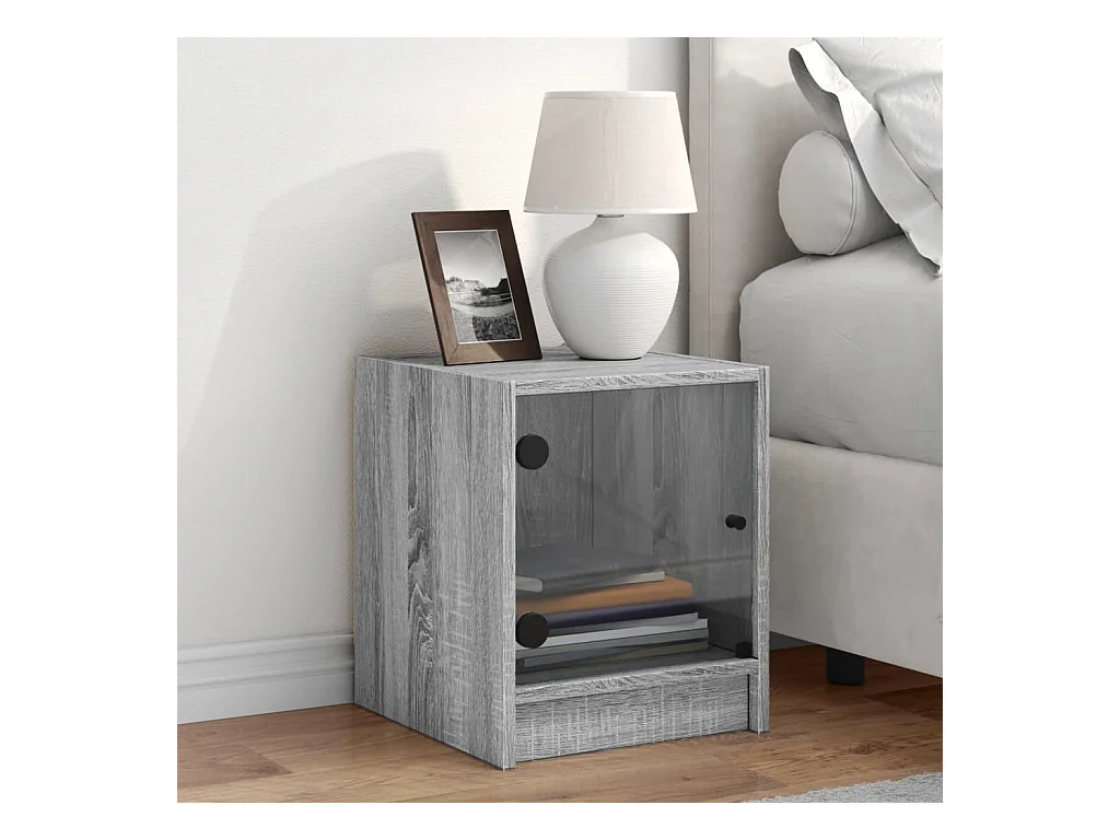 Table de chevet avec porte en verre sonoma gris 35x37x42