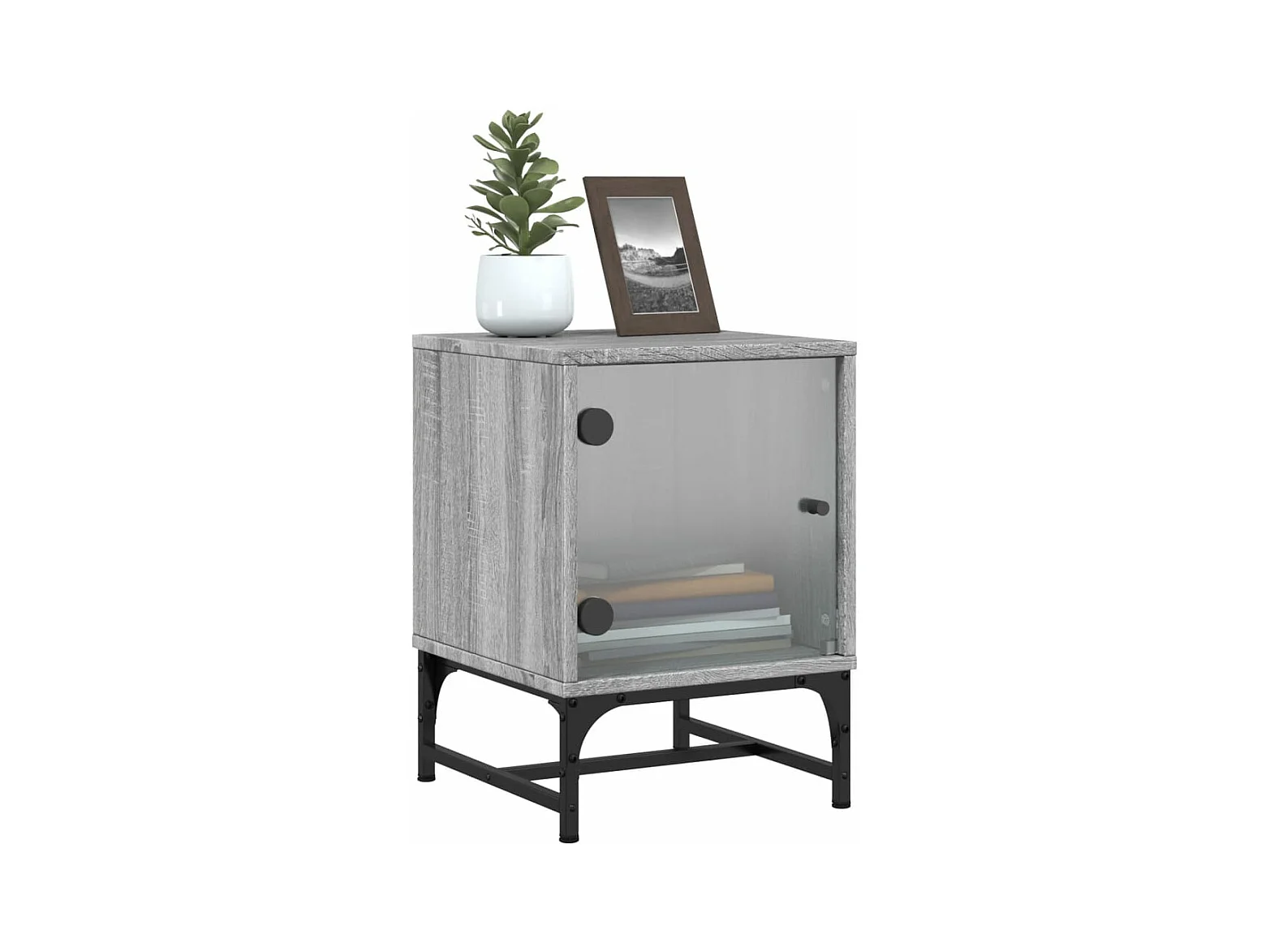 Table de chevet avec porte en verre sonoma gris 35x37x42