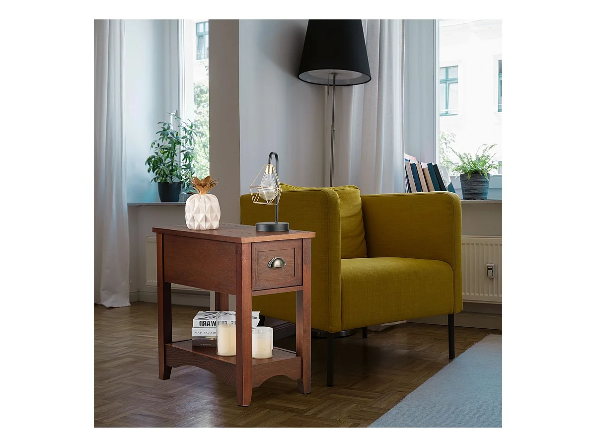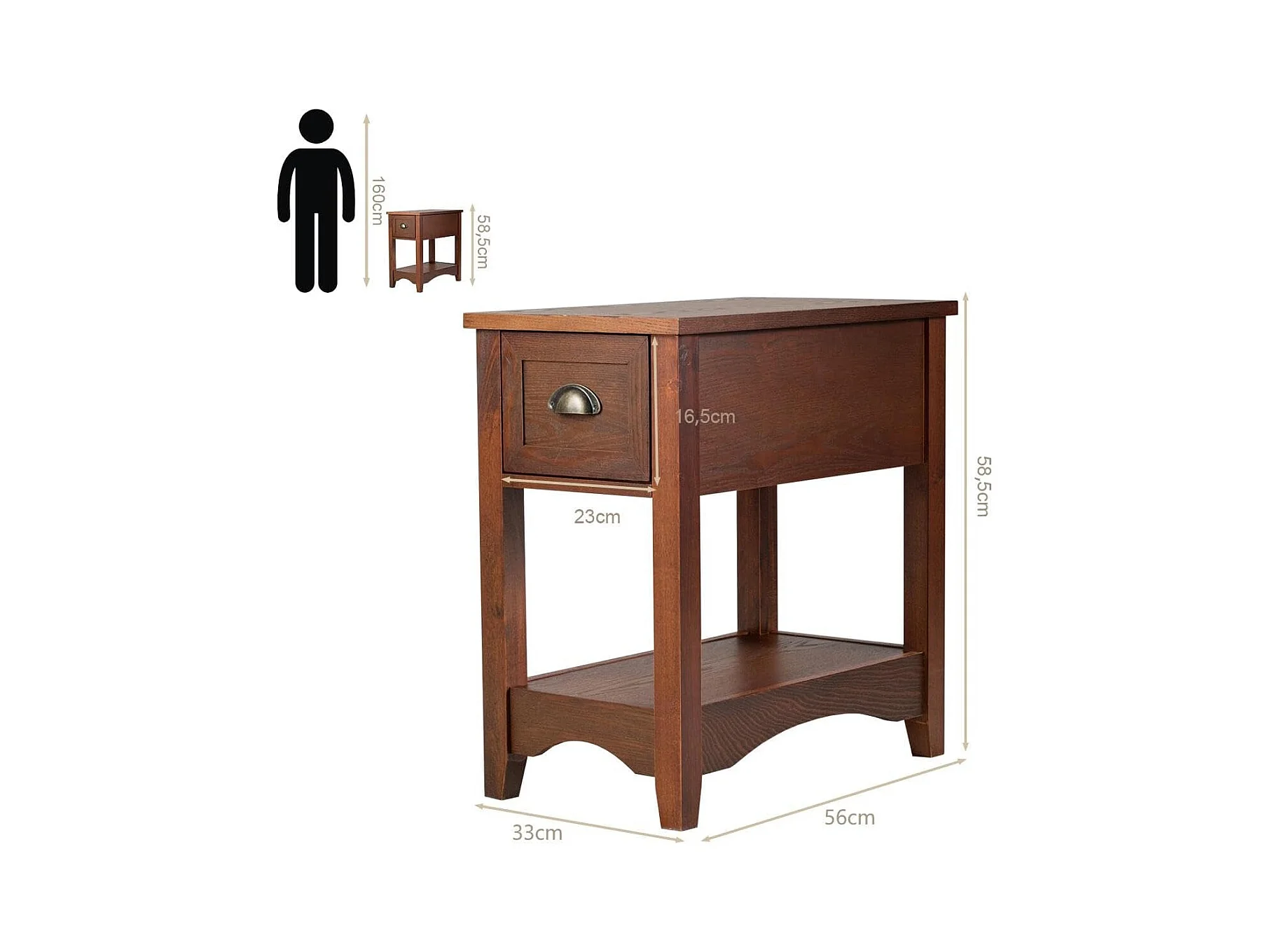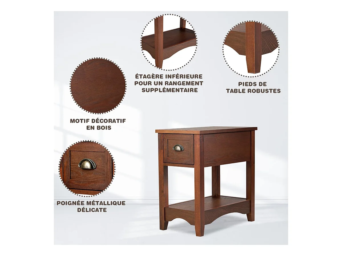 Table de Chevet avec Tiroir, Table d'Appoint Pieds en Bois d'Hévéa, Bout de Canapé Rétro pour Chambre, Salon, 56 x 33 x 58,5 cm (Brun rougeâtre, Lot de 1)