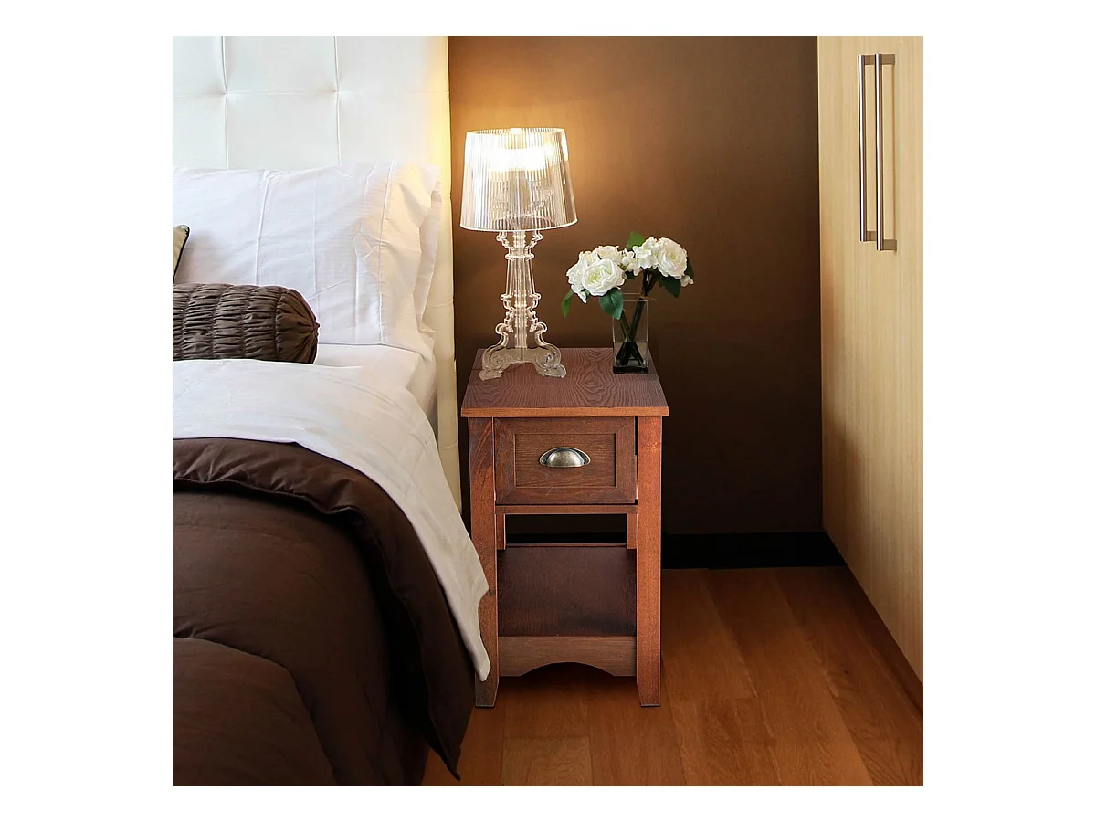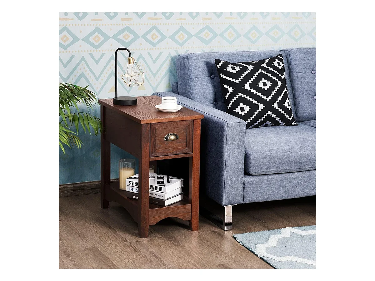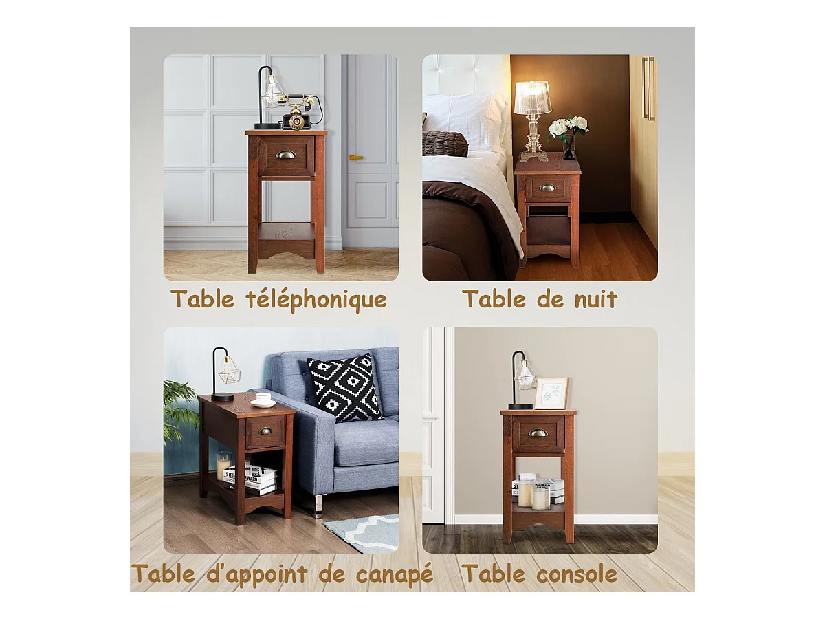 Table de Chevet avec Tiroir, Table d'Appoint Pieds en Bois d'Hévéa, Bout de Canapé Rétro pour Chambre, Salon, 56 x 33 x 58,5 cm (Brun rougeâtre, Lot de 1)