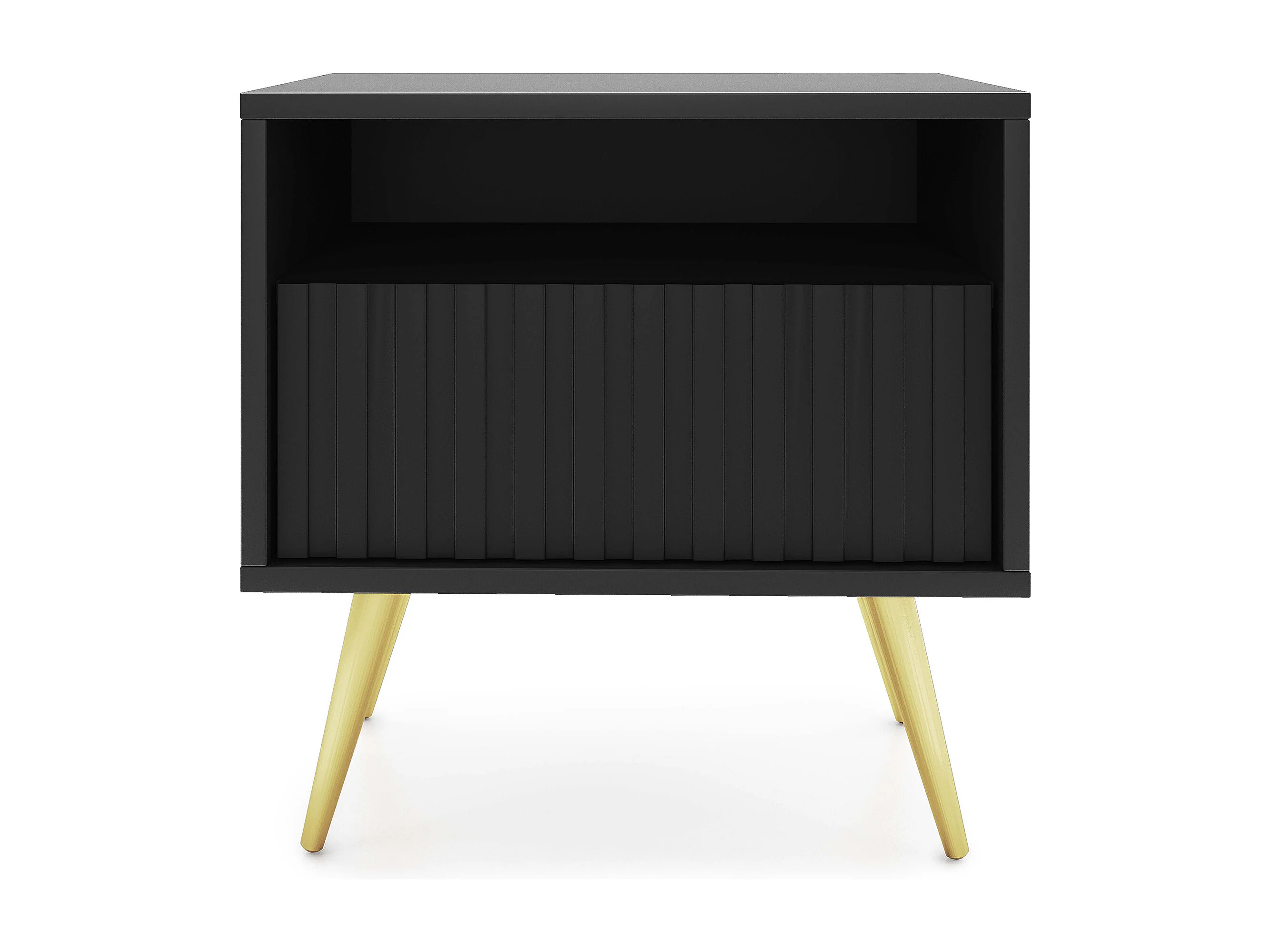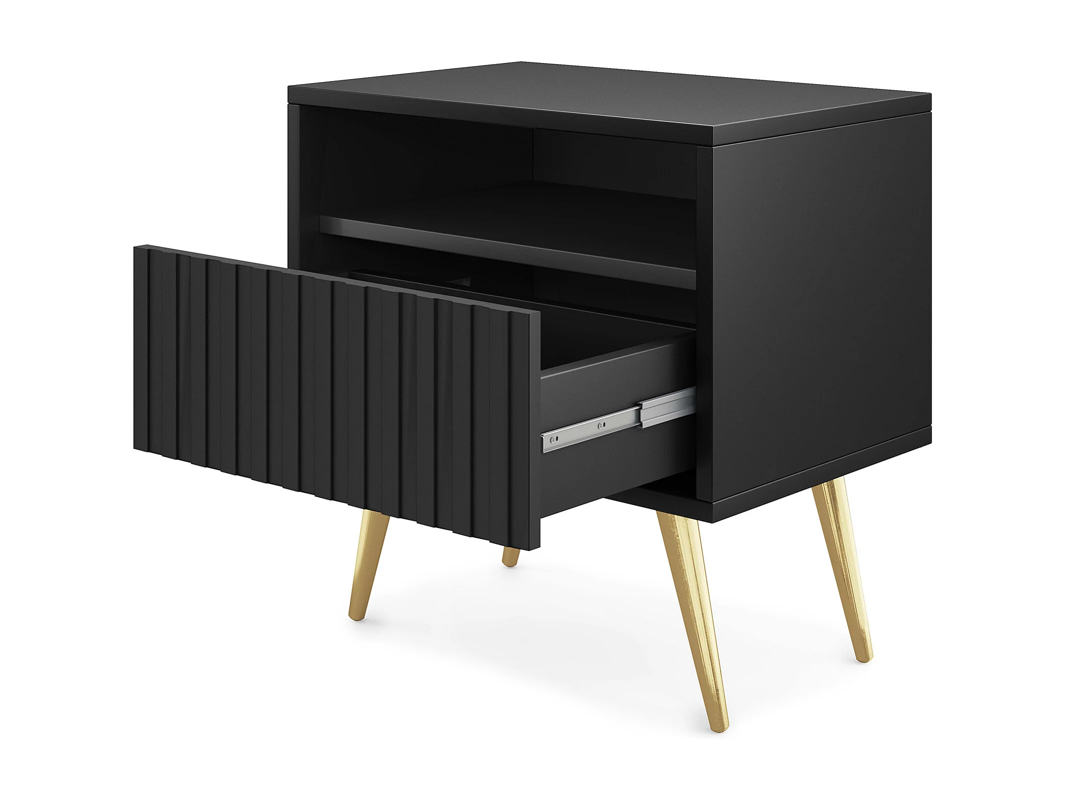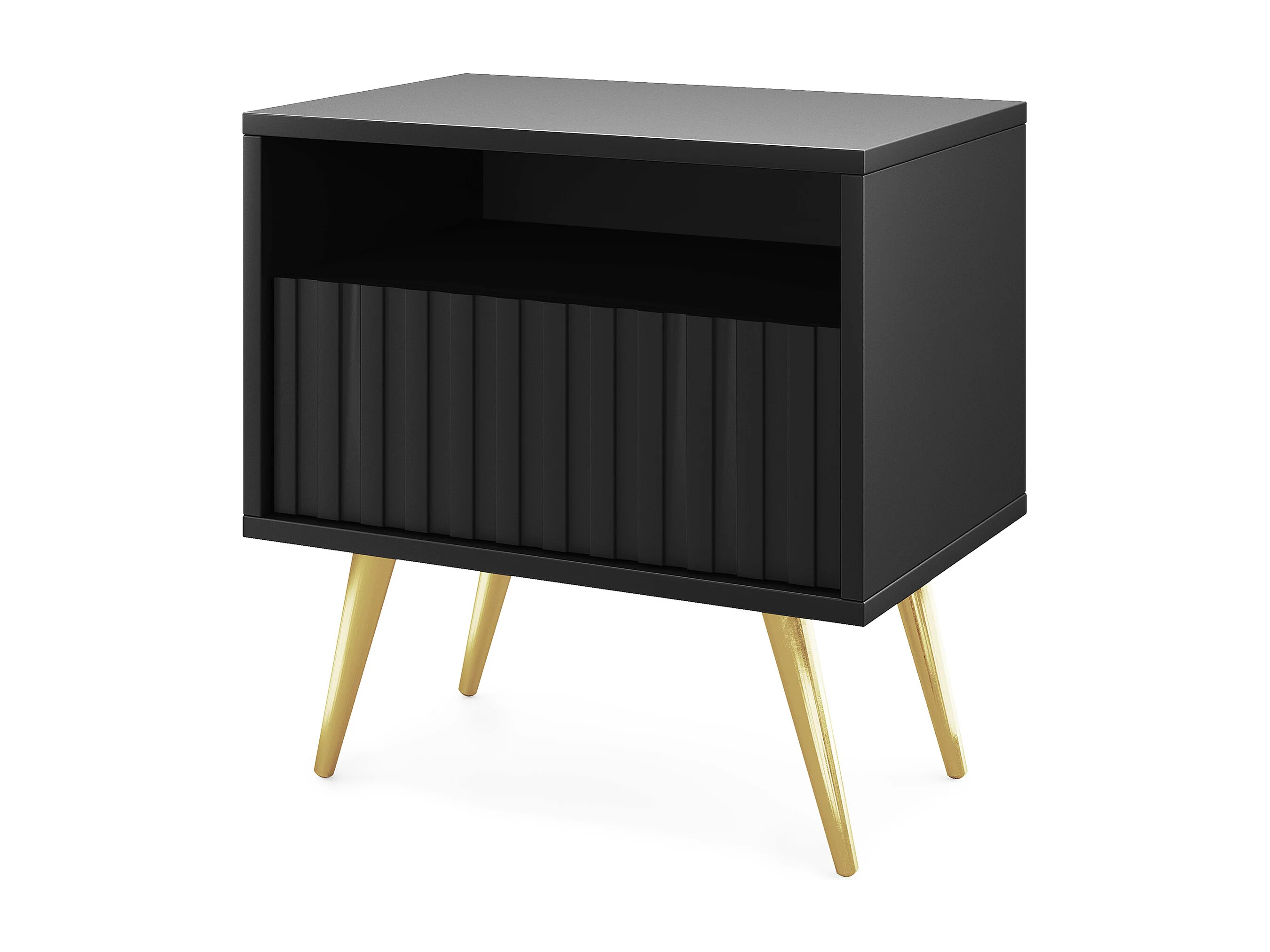 Table de chevet avec un tiroir - façade à lamelles - noir avec pieds dorés - BELLO