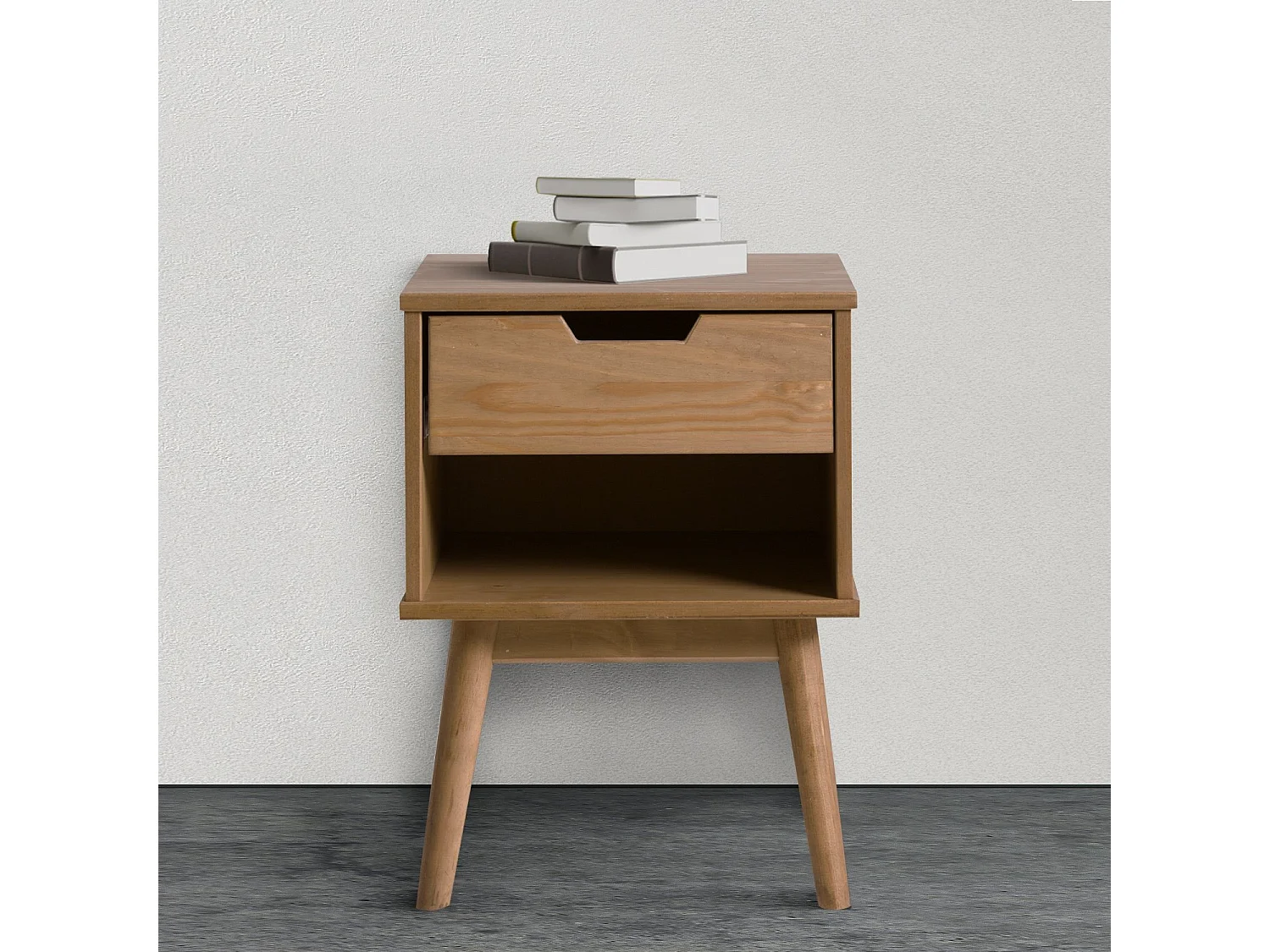 Table de Chevet Bali 1 tiroir, Fabriqué en Bois de pin Massif
