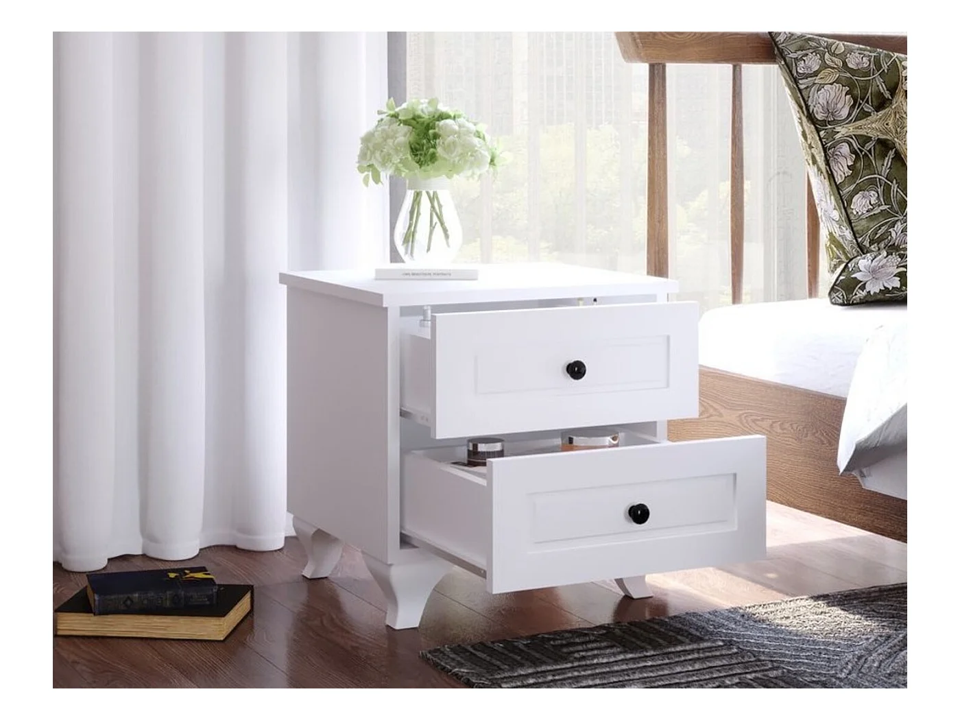 Table de chevet 2 tiroirs en laqué blanc 40x56.5 cm-Vichy