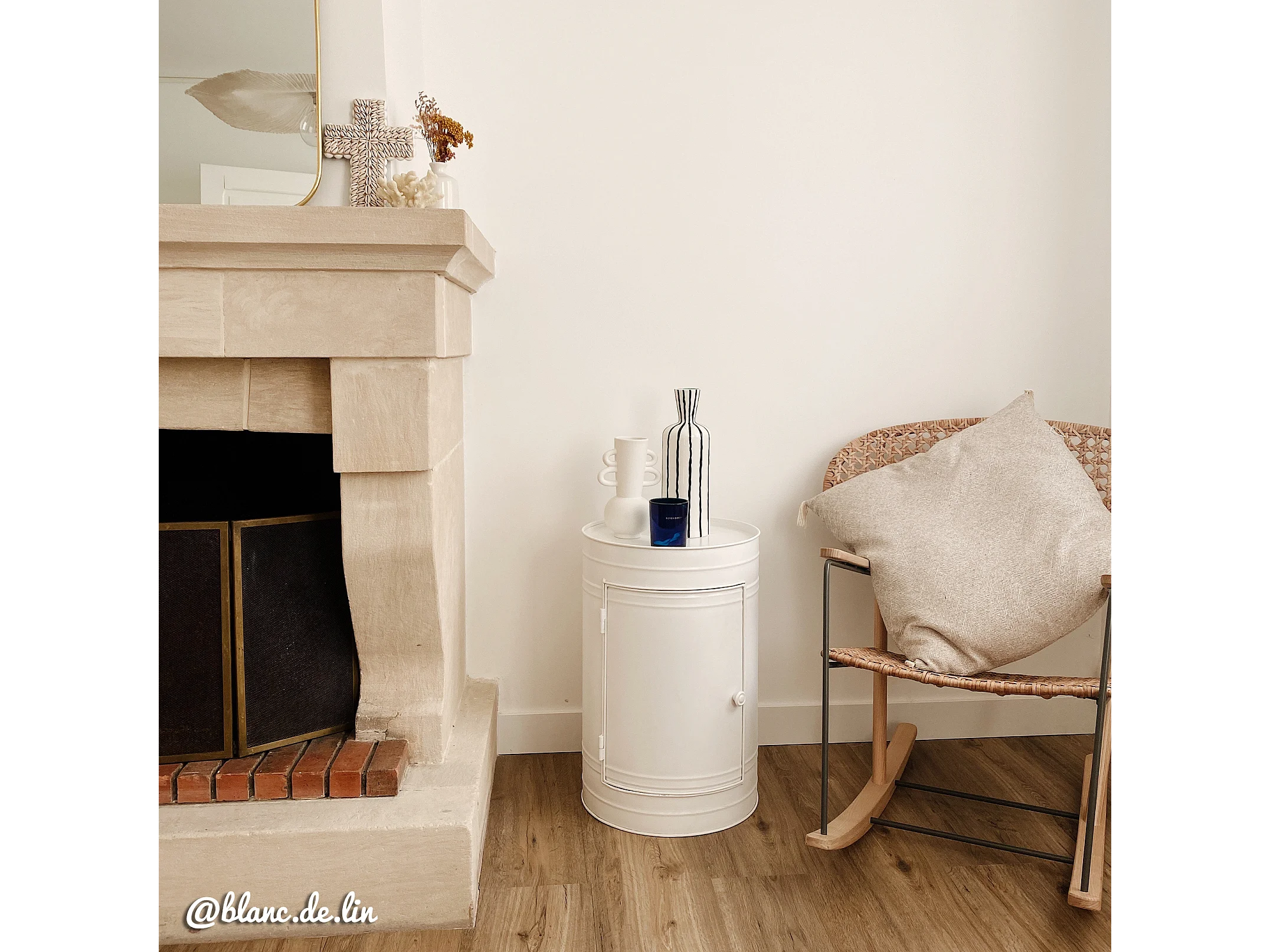 Table de chevet bidon en métal blanc Meryl