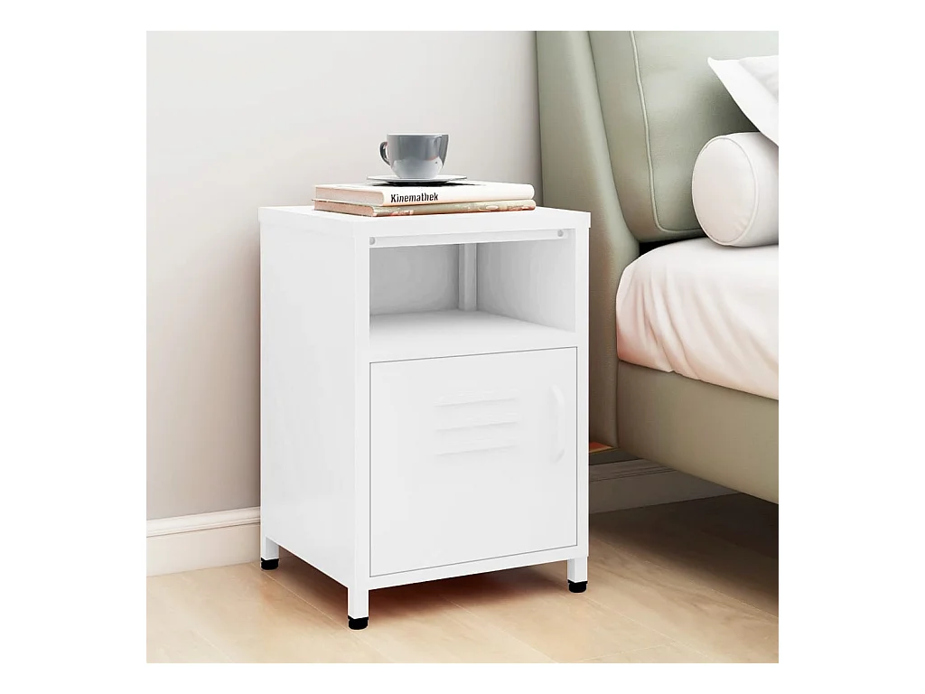 Elthor Table de chevet blanc 34,5x39x44 cm acier
