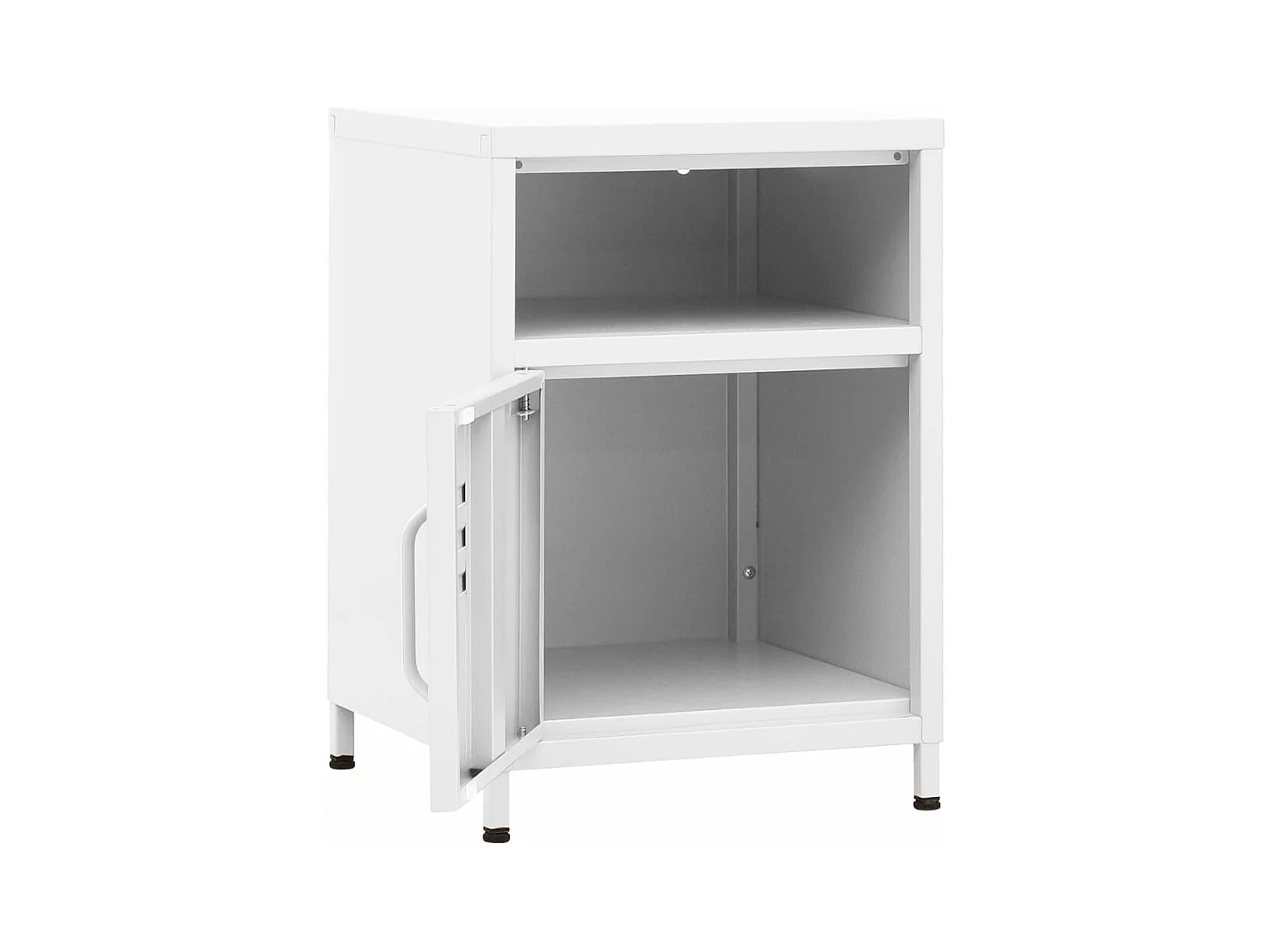 Table de chevet armoire 40x30x58 cm blanc mat en acier poignée de porte à gauche style industriel meuble de nuit d'appoint commode d'entrée chambre