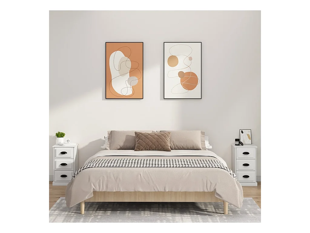 Tables de chevet 2 pcs Blanc Bois d'ingénierie