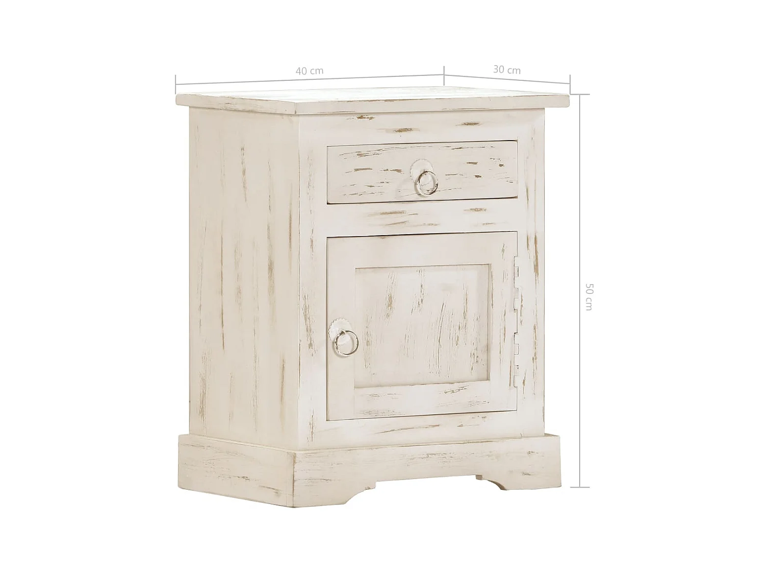 Table de chevet Blanc 40 x 30 x 50 cm Bois de manguier massif