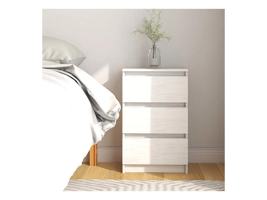 Table de chevet blanc 40x31x35,5 bois de pin massif