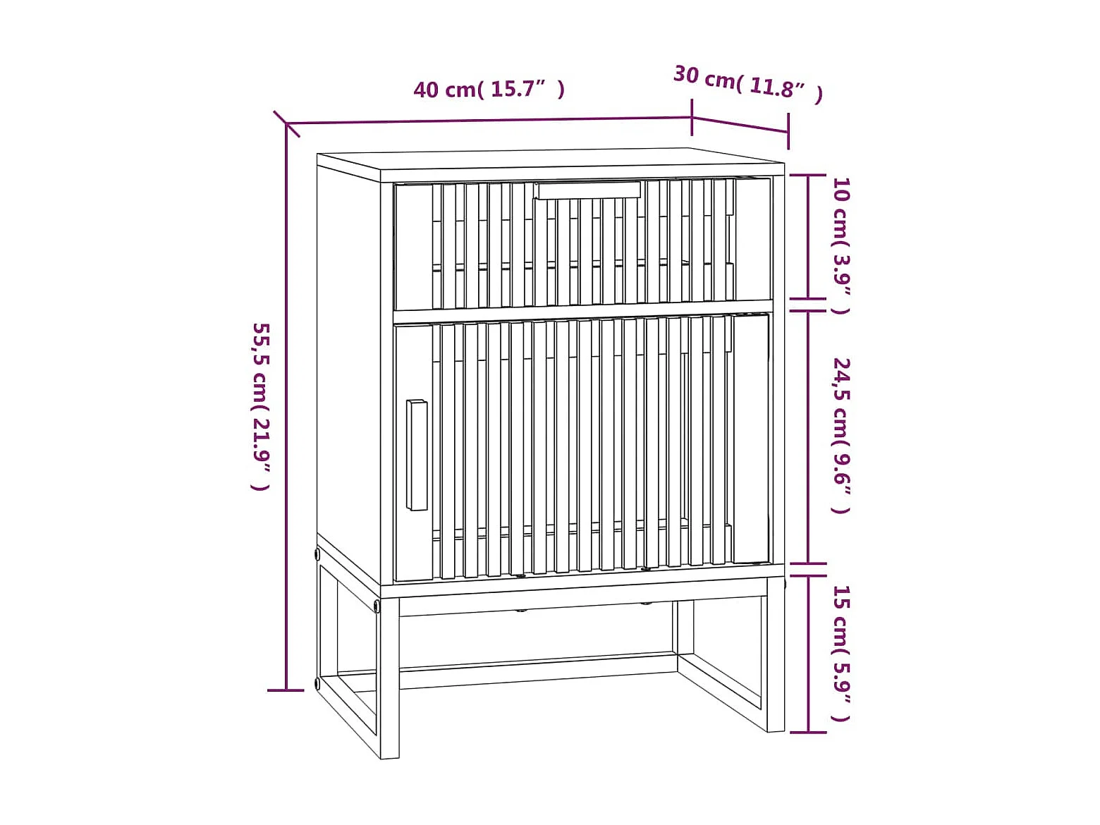Table de chevet 1 tiroir et 1 niche acacia massif foncé et blanc Soken