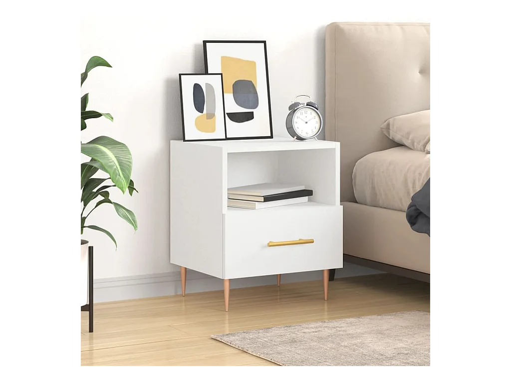 Table de chevet blanc 40x35x47,5 bois d’ingénierie