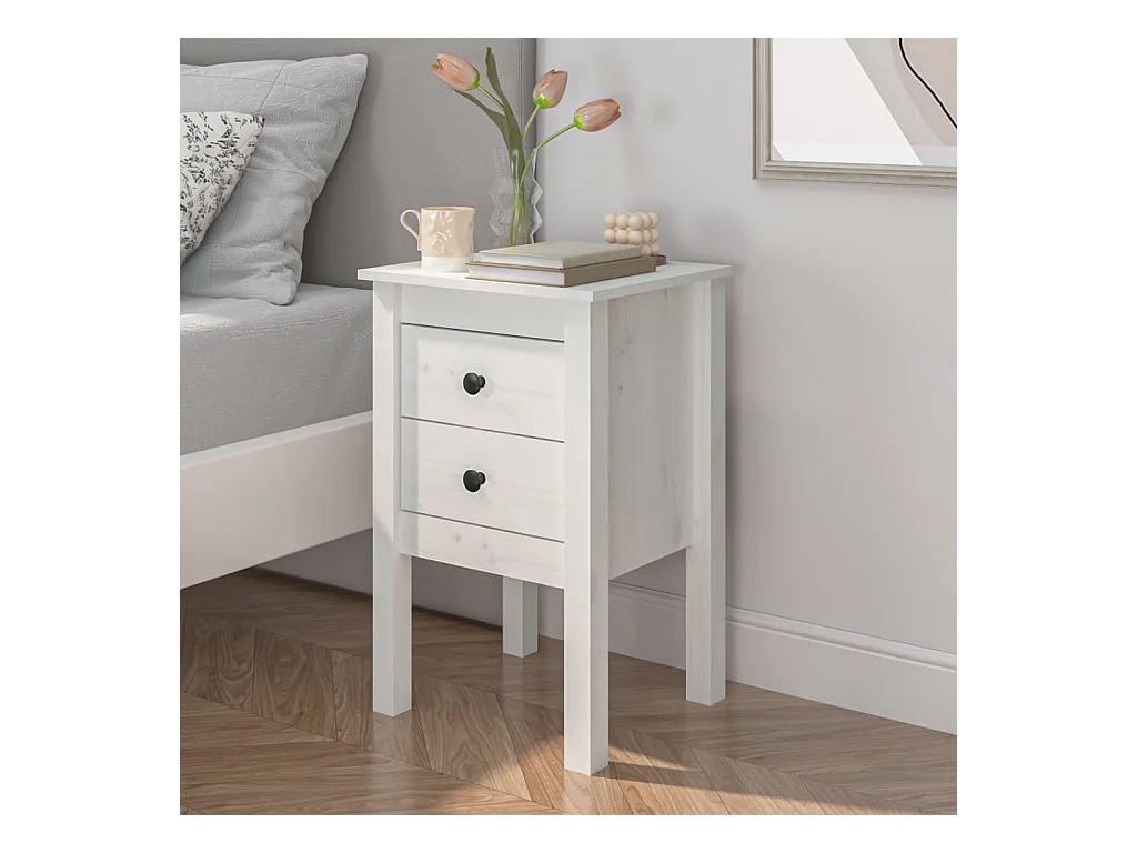 Table de chevet Blanc 40x35x61,5 Bois de pin massif