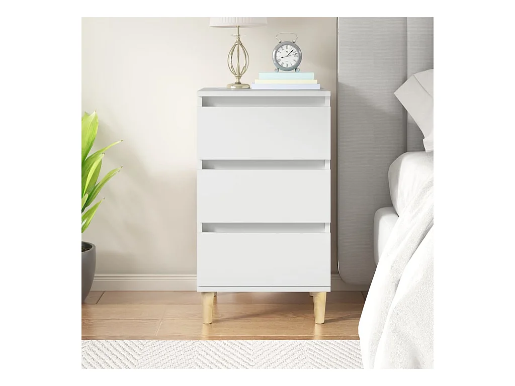 Table de chevet blanc brillant 40x35x70 bois d’ingénierie