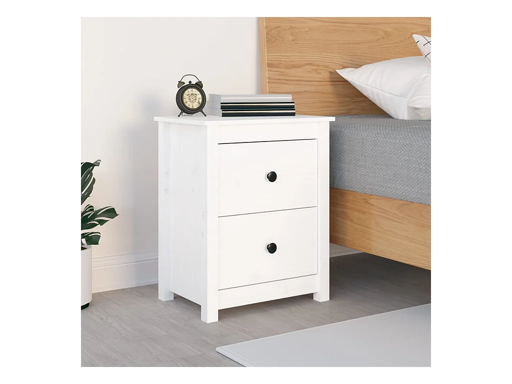 Table de chevet VIKEN blanc bois de pin solide